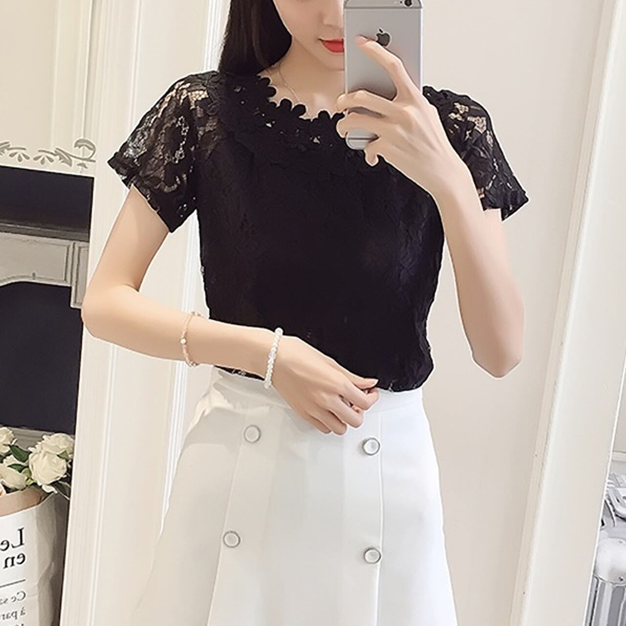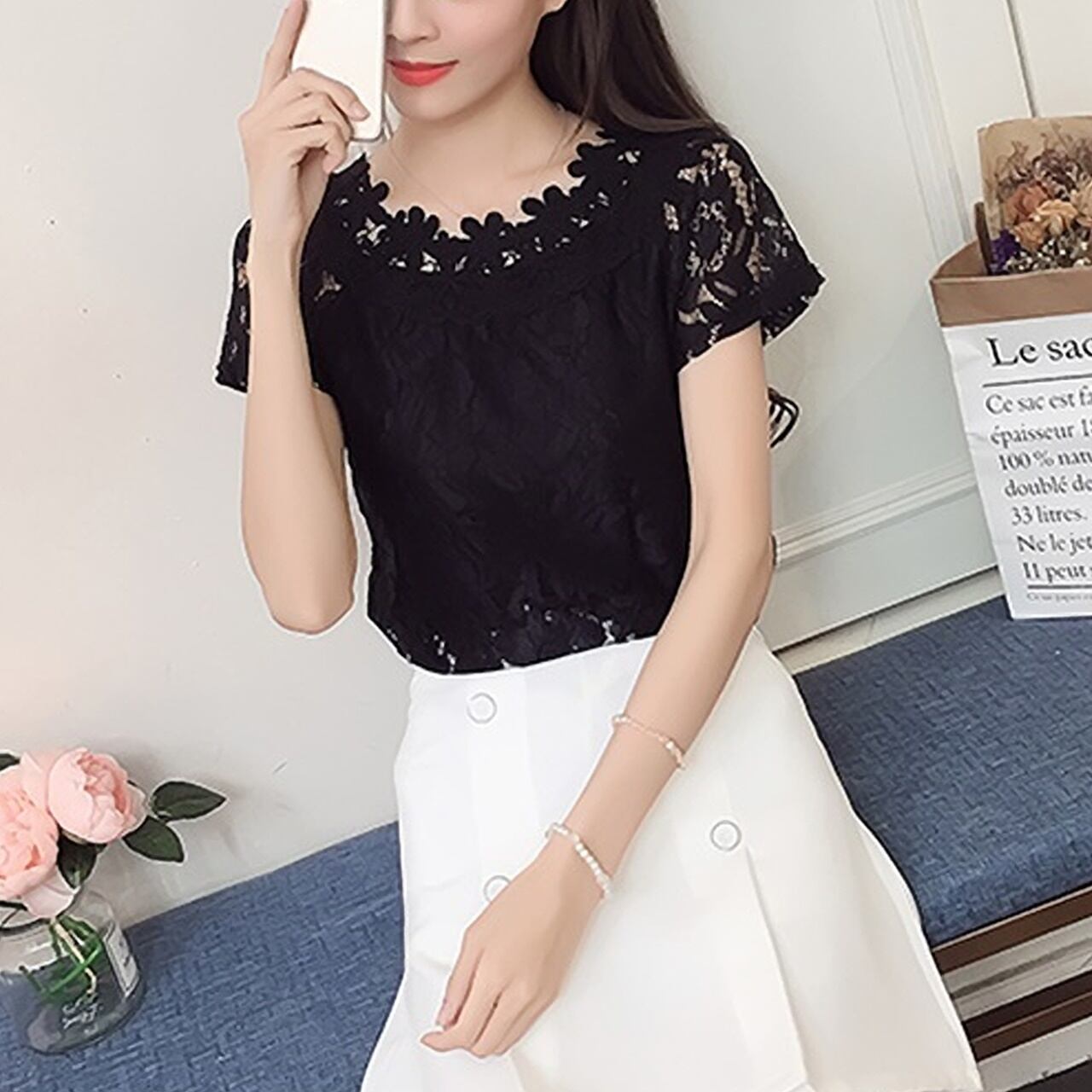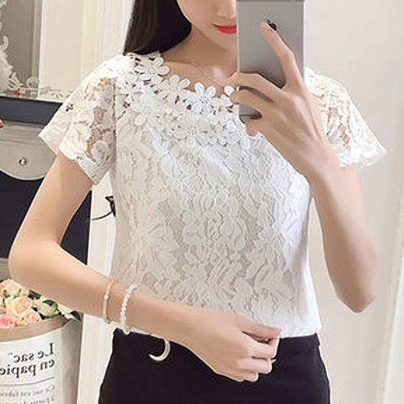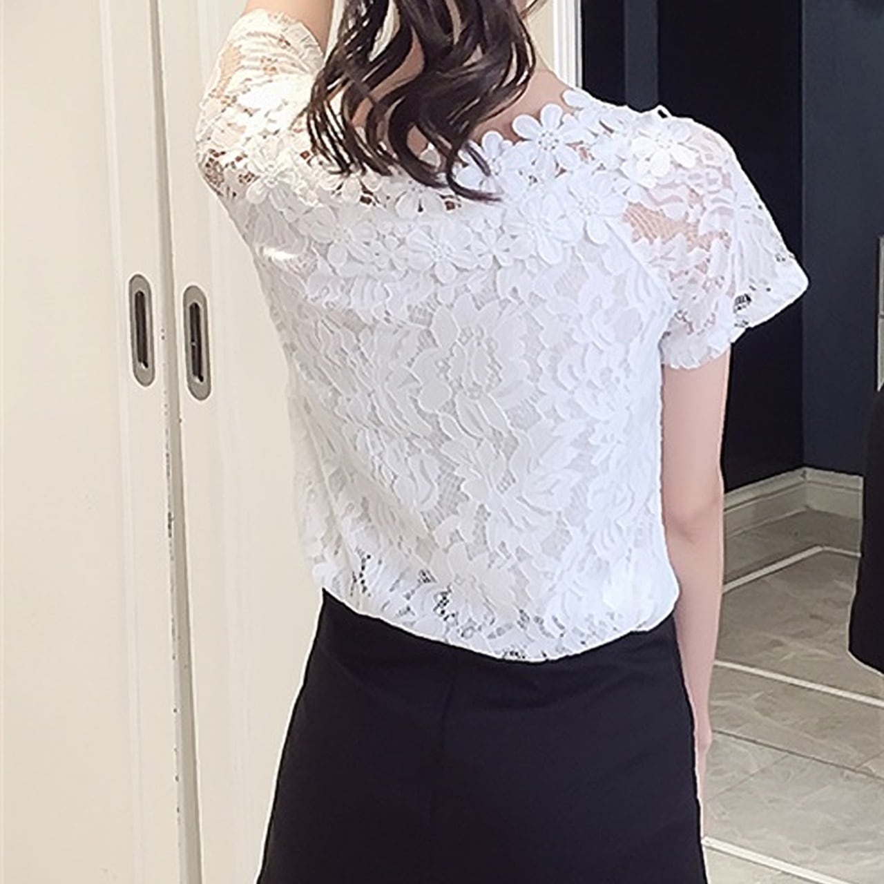 2カラー フラワーネック レースブラウス S ‐ 2XL *004