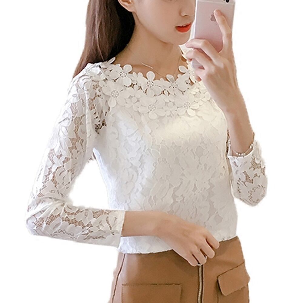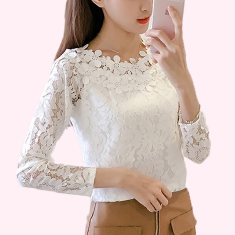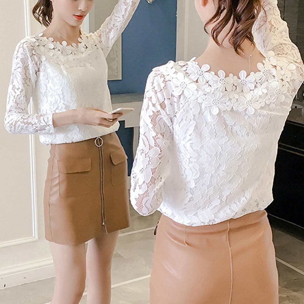 2カラー フラワーネックタイトブラウス S‐2XL *005