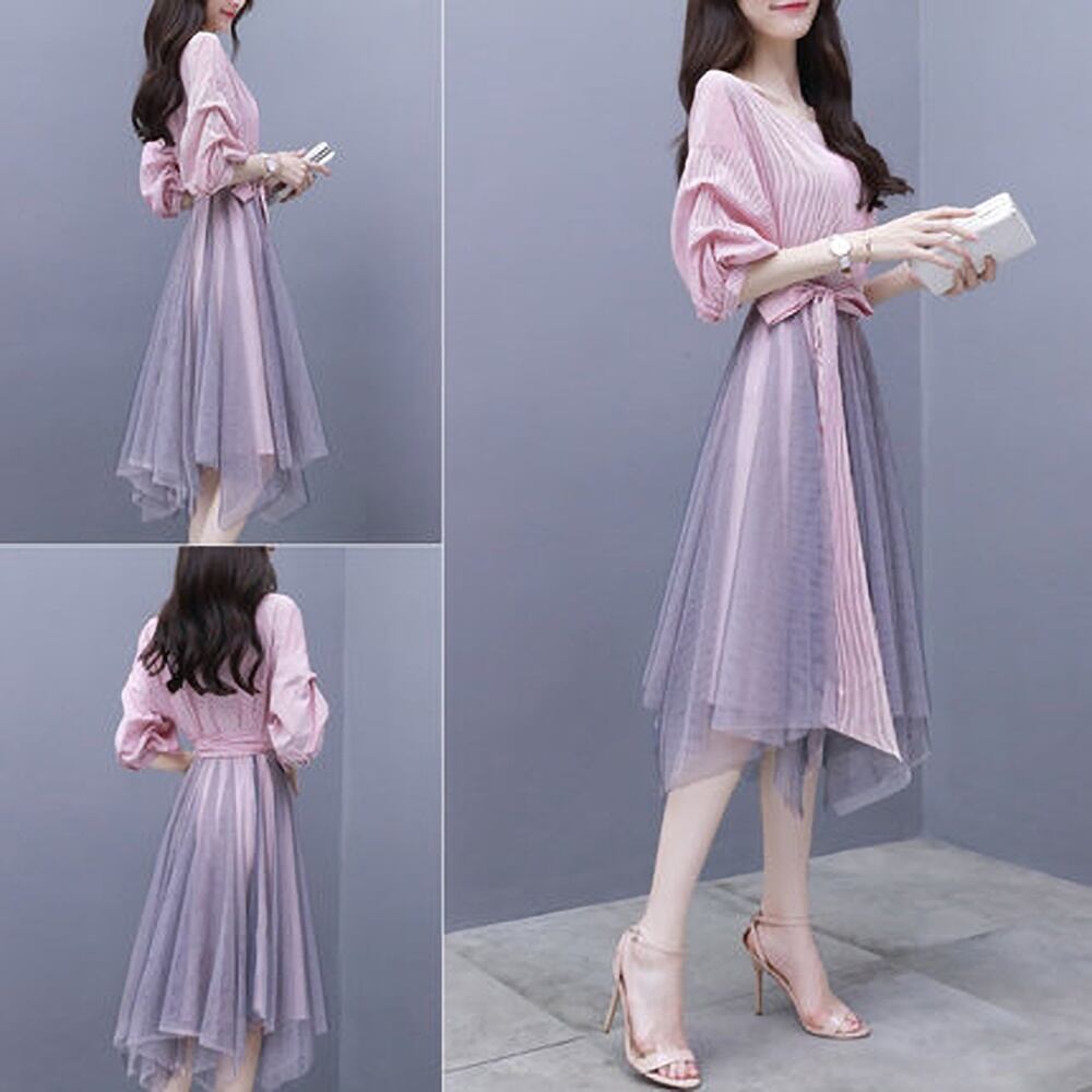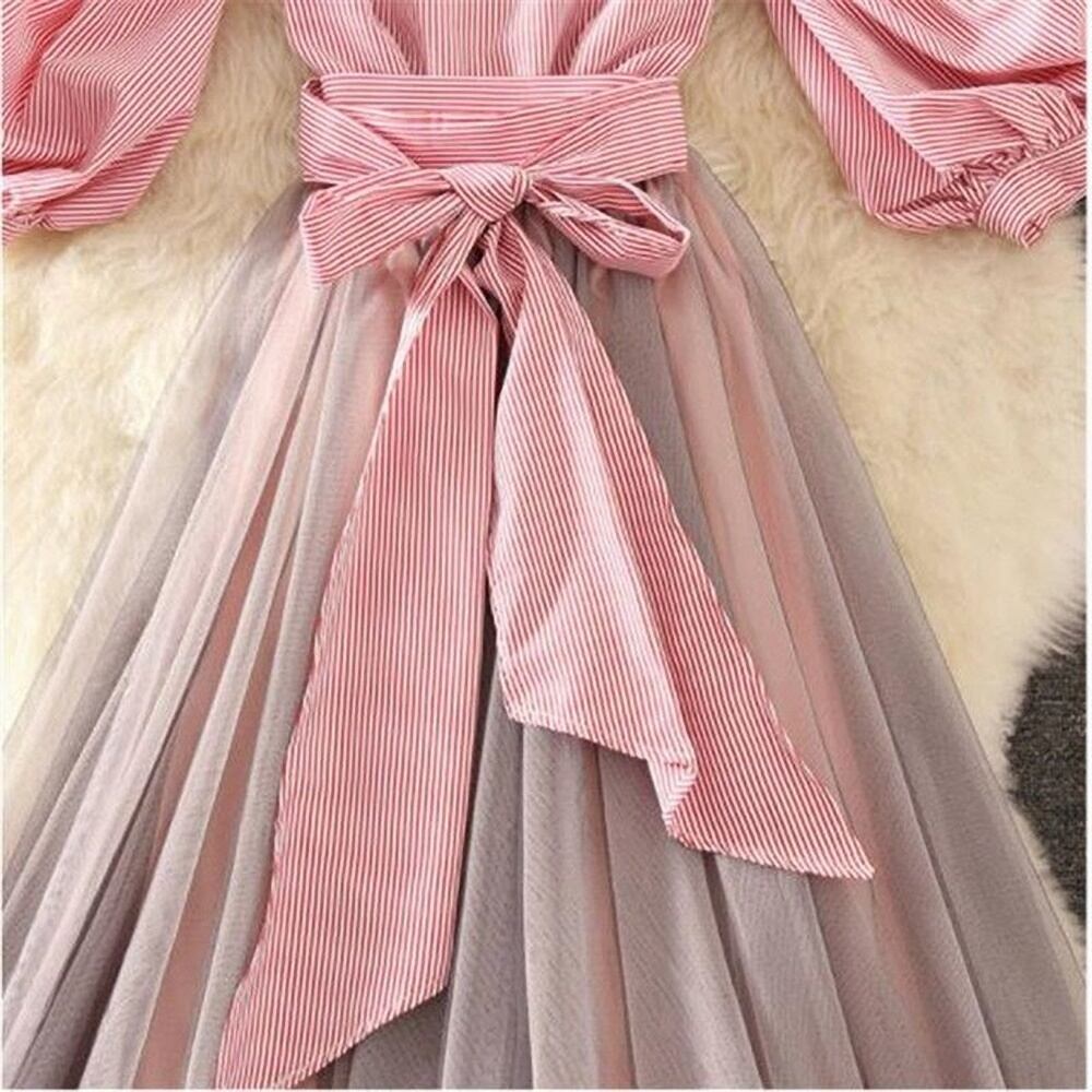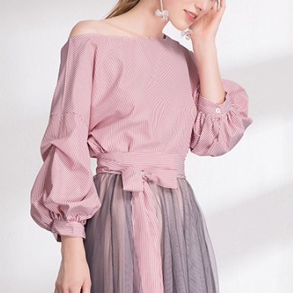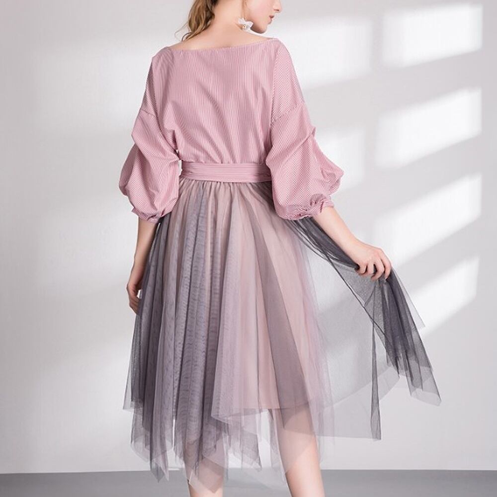 セットアップ ストライプブラウス チュールワンピース S ‐ 2XL *012