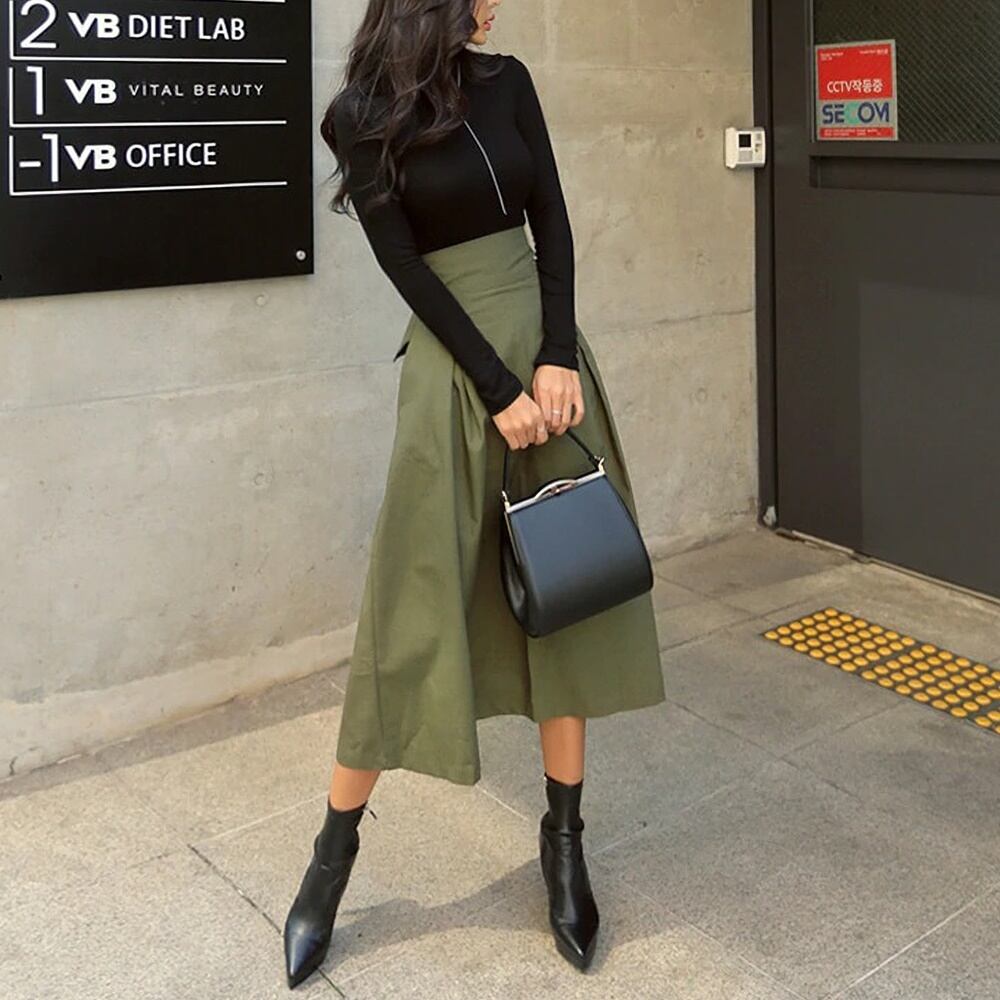 ミニタリー バックシャンロングスカート S-XL *sk005