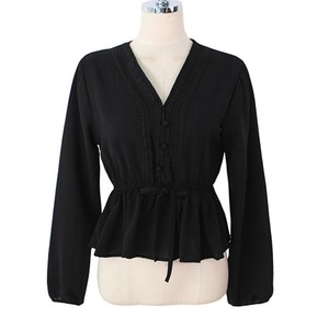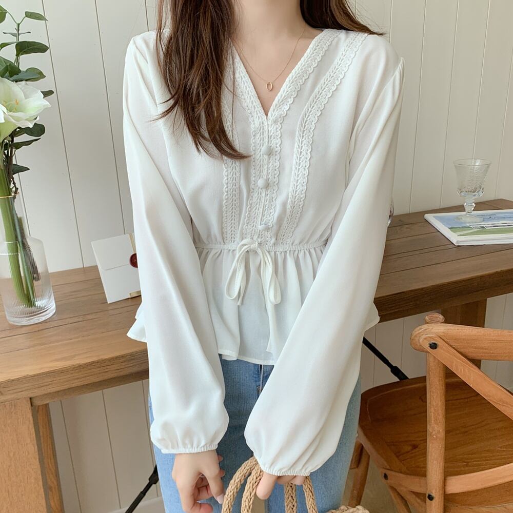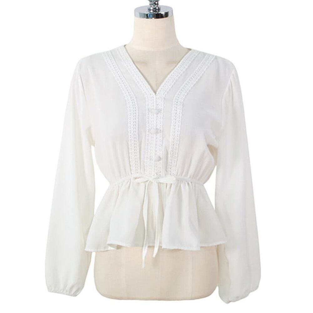 2カラ― レースシフォンブラウス サッシュリボン S - XL *043