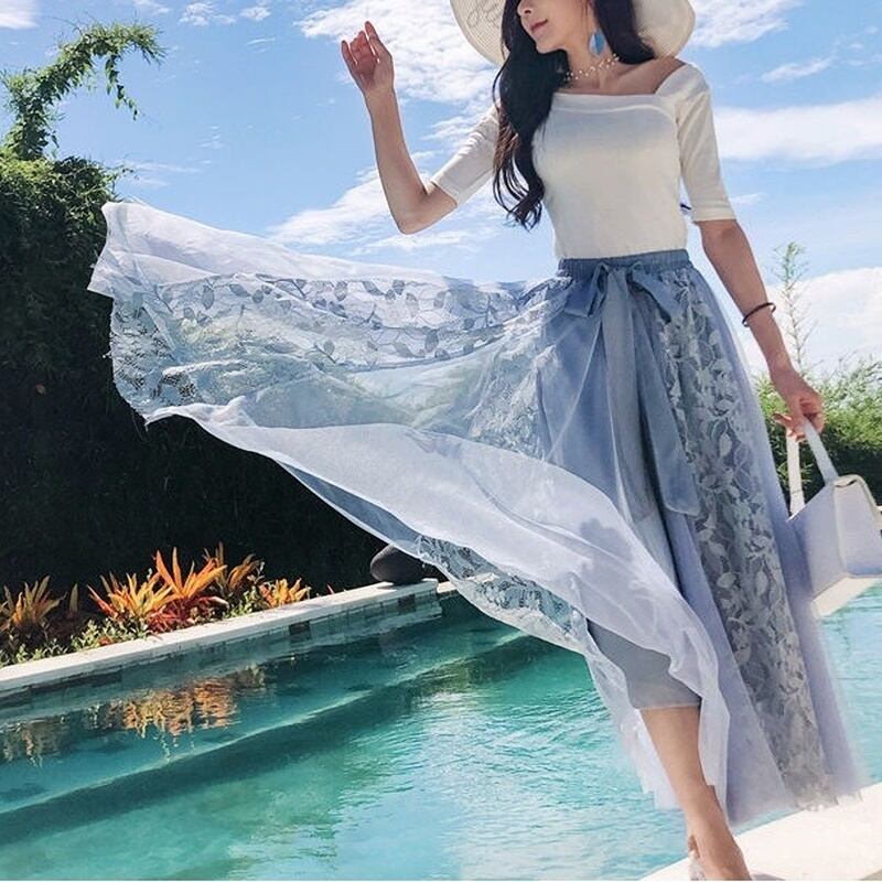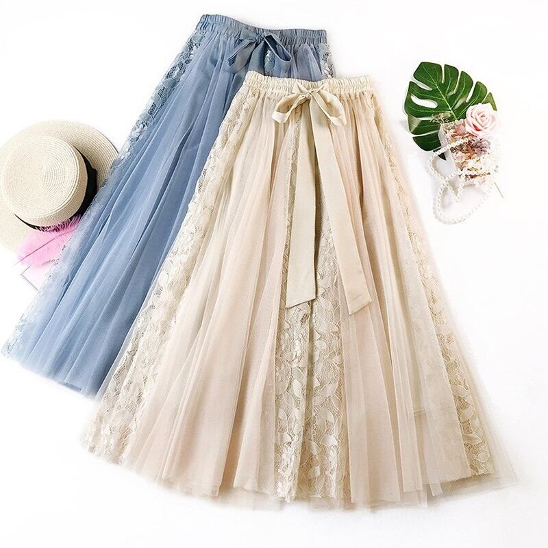 4カラ― フラワーレースチュールドッキングスカート *sk008