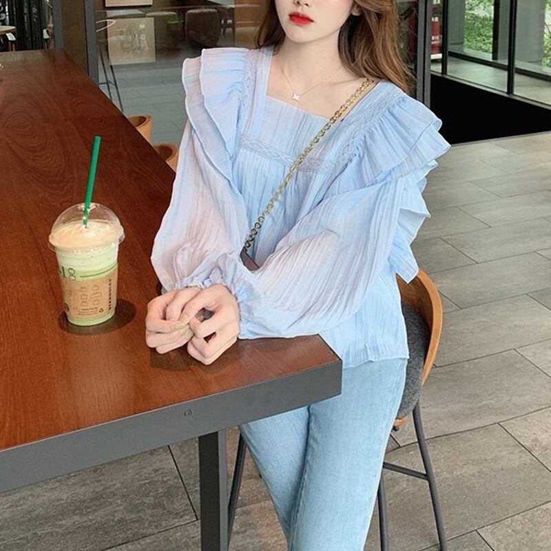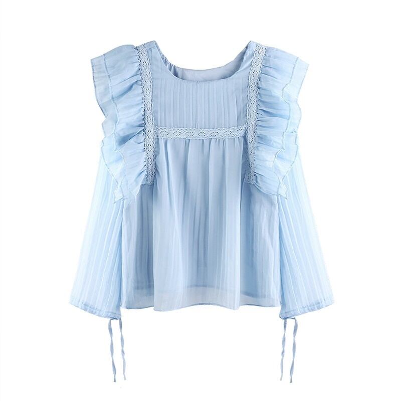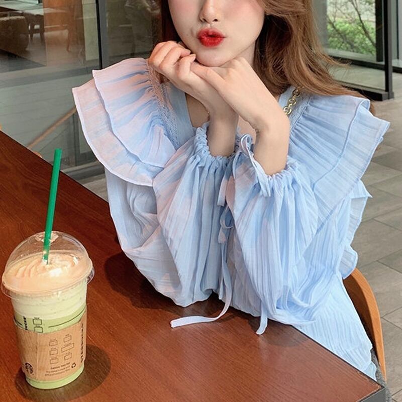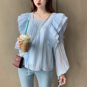 バブルスリーブフリルシフォンリボンブラウス *bl028