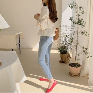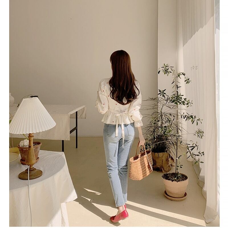 バックリボンフラワー刺繍ブラウス *bl026