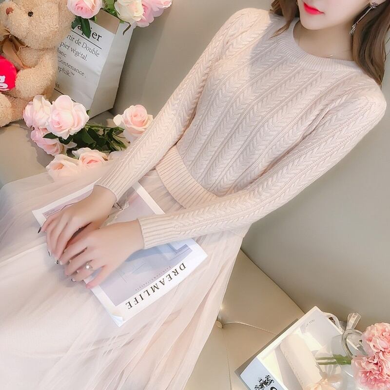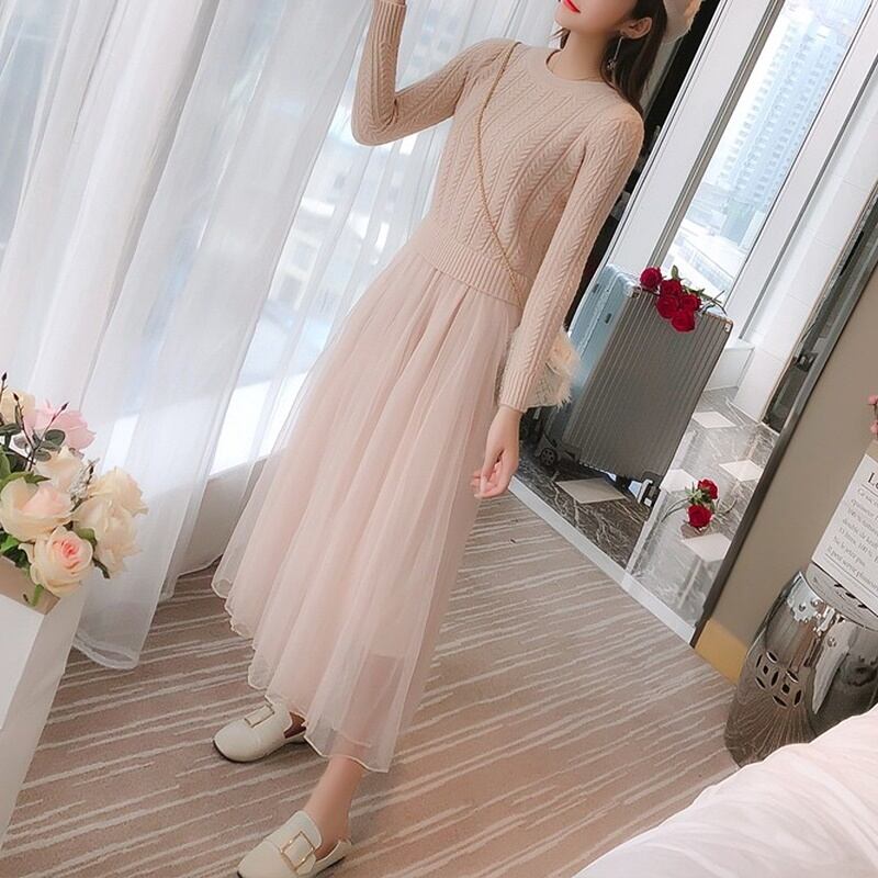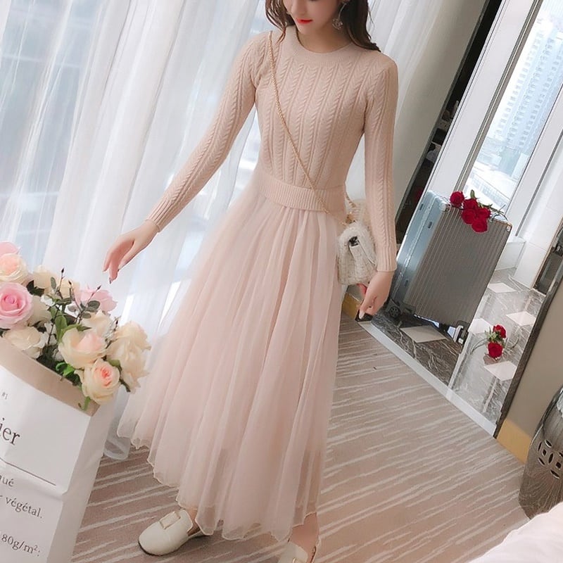 2カラー ニットチュールワンピース S‐XL *on023