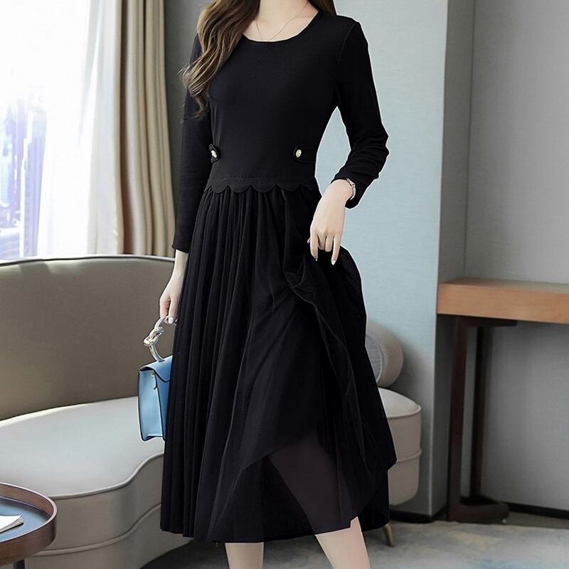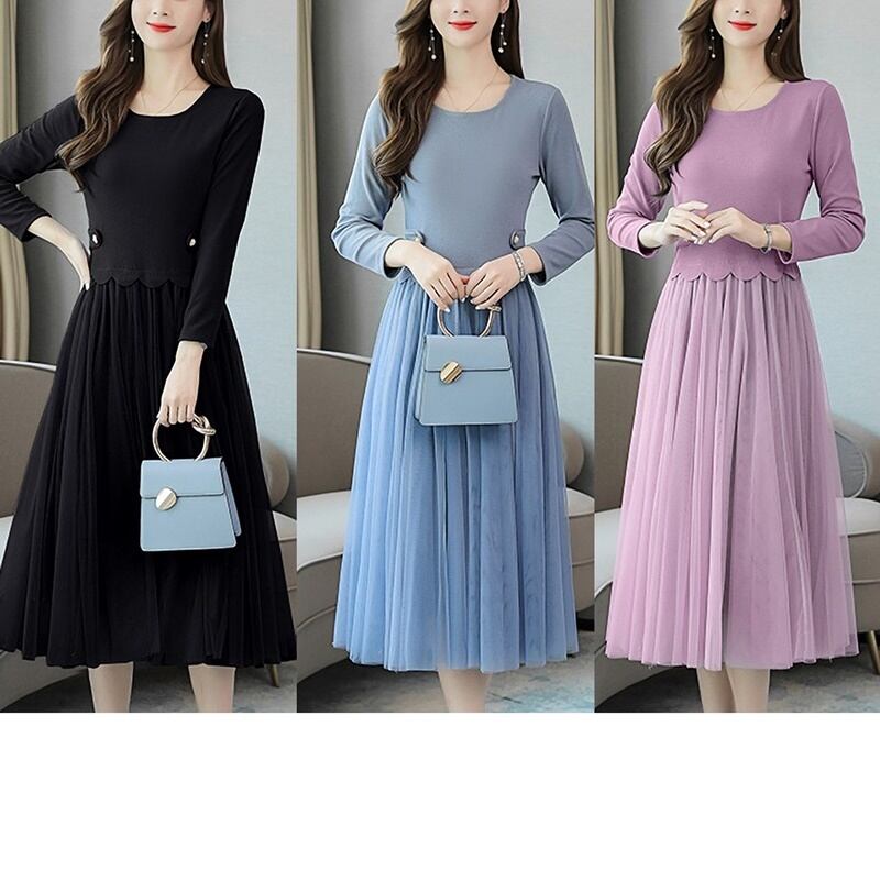 3カラ― ウエストデザインチュールワンピース M‐2XL *on028