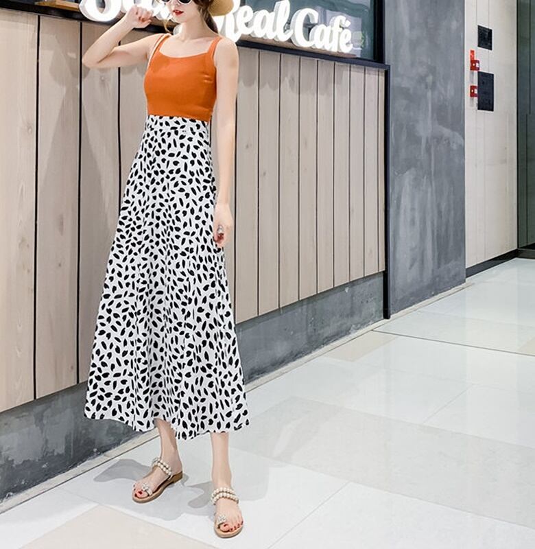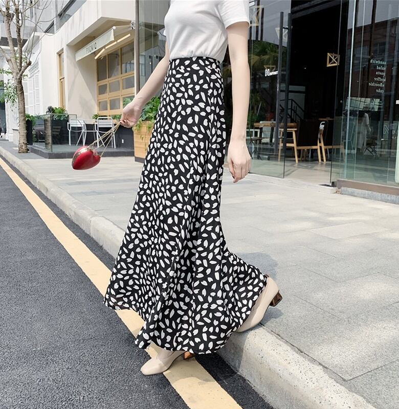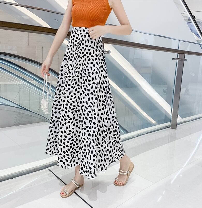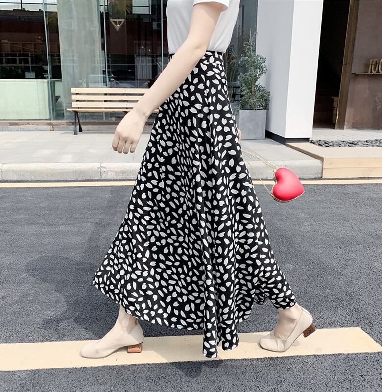3カラ― 花びらプリントシフォンロングスカート S-2XL *sk021