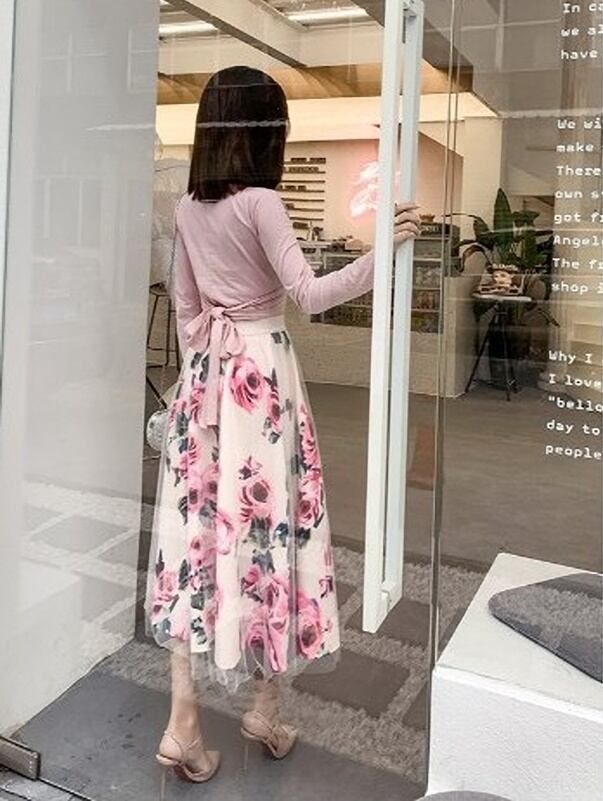 2カラー リボンクロスシャツ ローズスカート セットアップ *set006