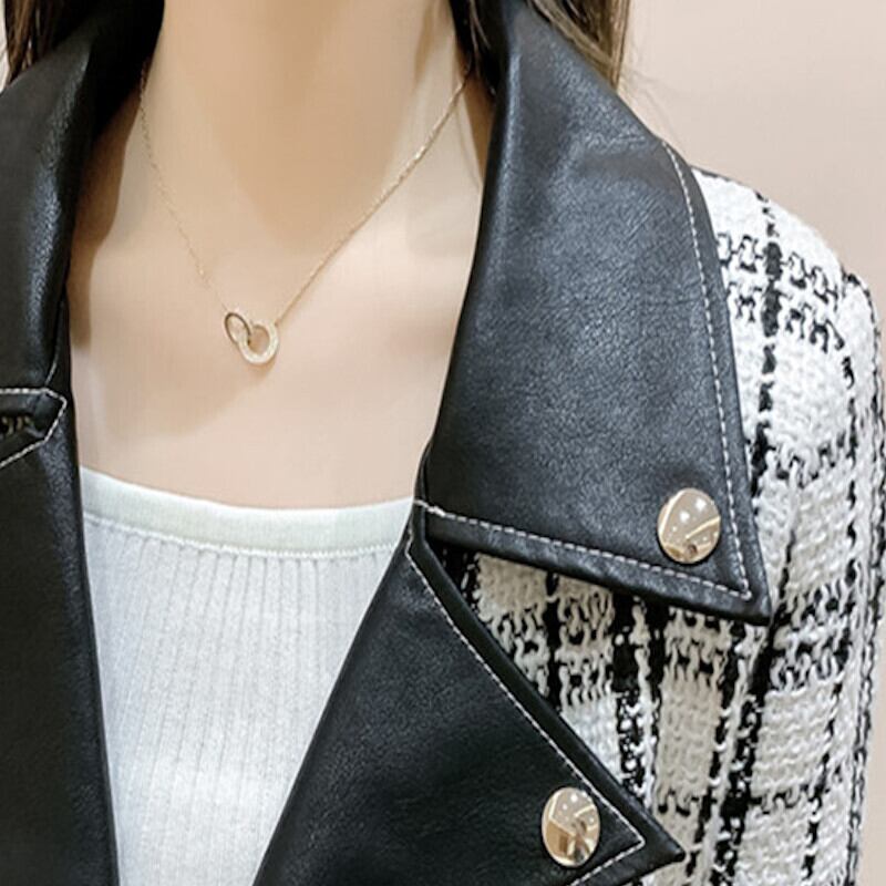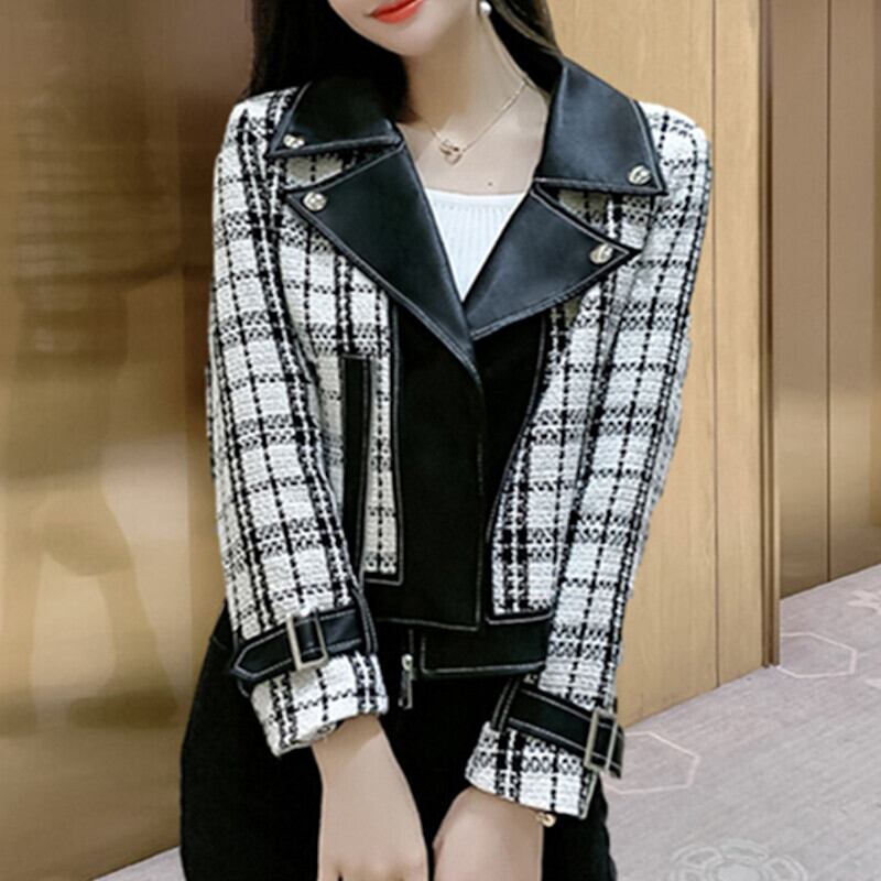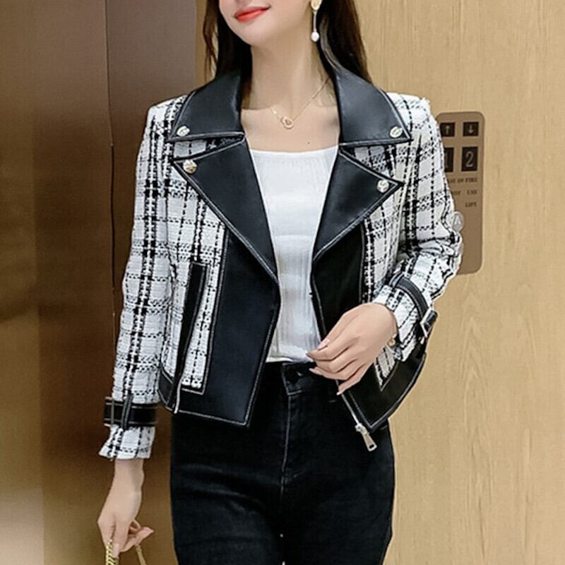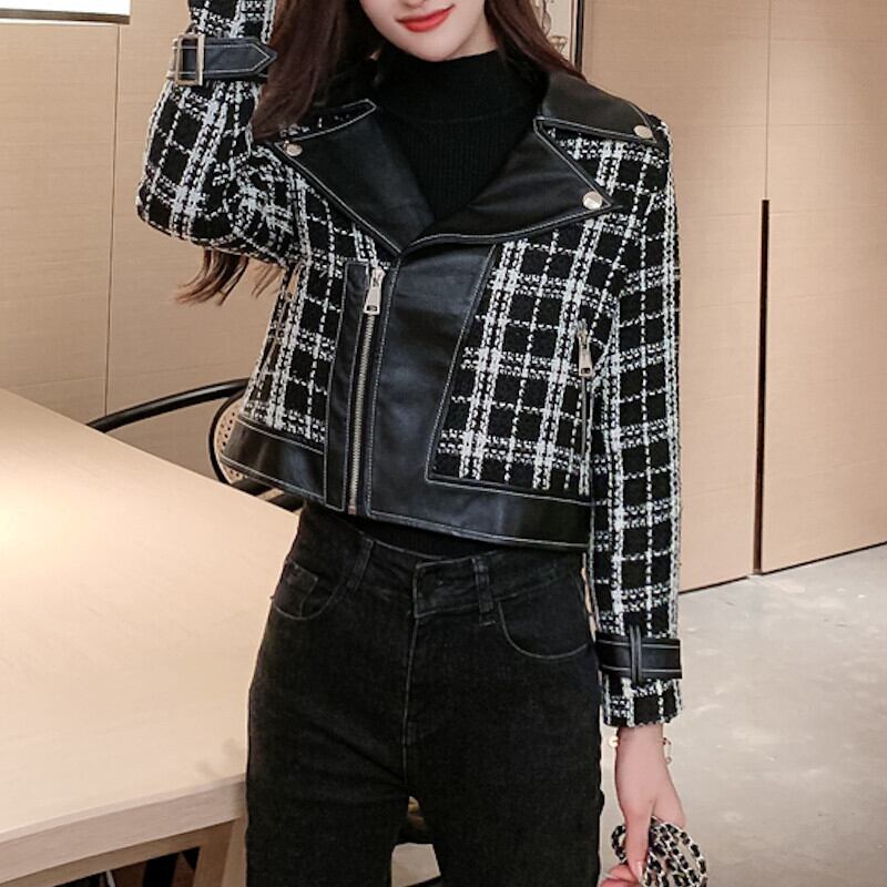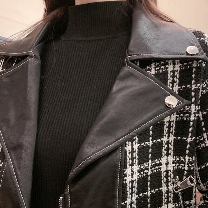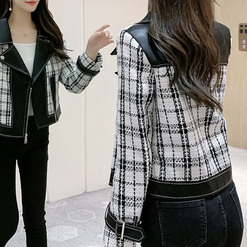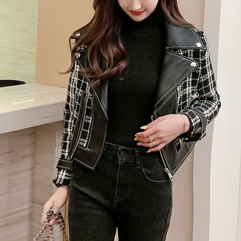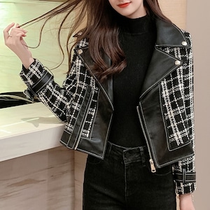 メンズっぽいライダースジャケットをツイードチェックでフェミニンな印象にしたお洒落で可愛い一着です♡