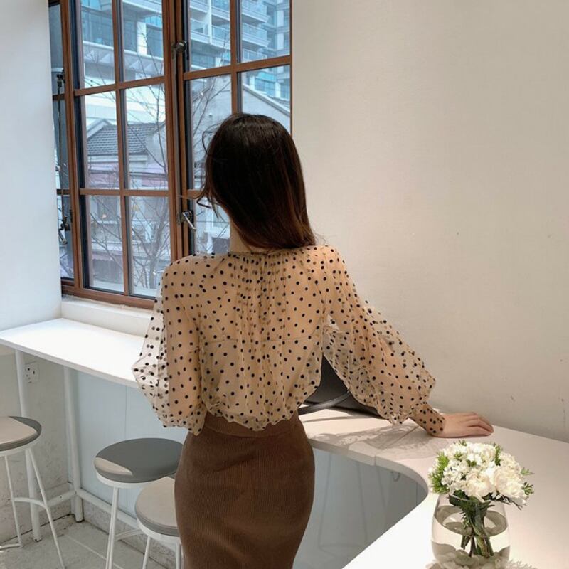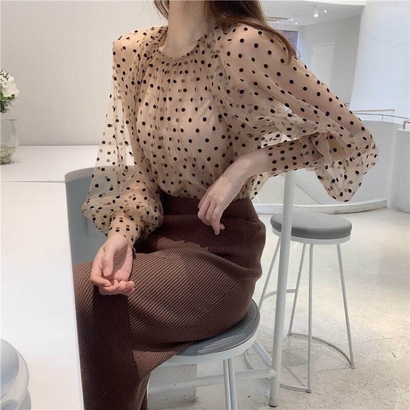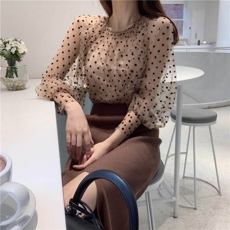 ♡絶妙な透け感プラスで大人レディなドット柄ブラウス♡