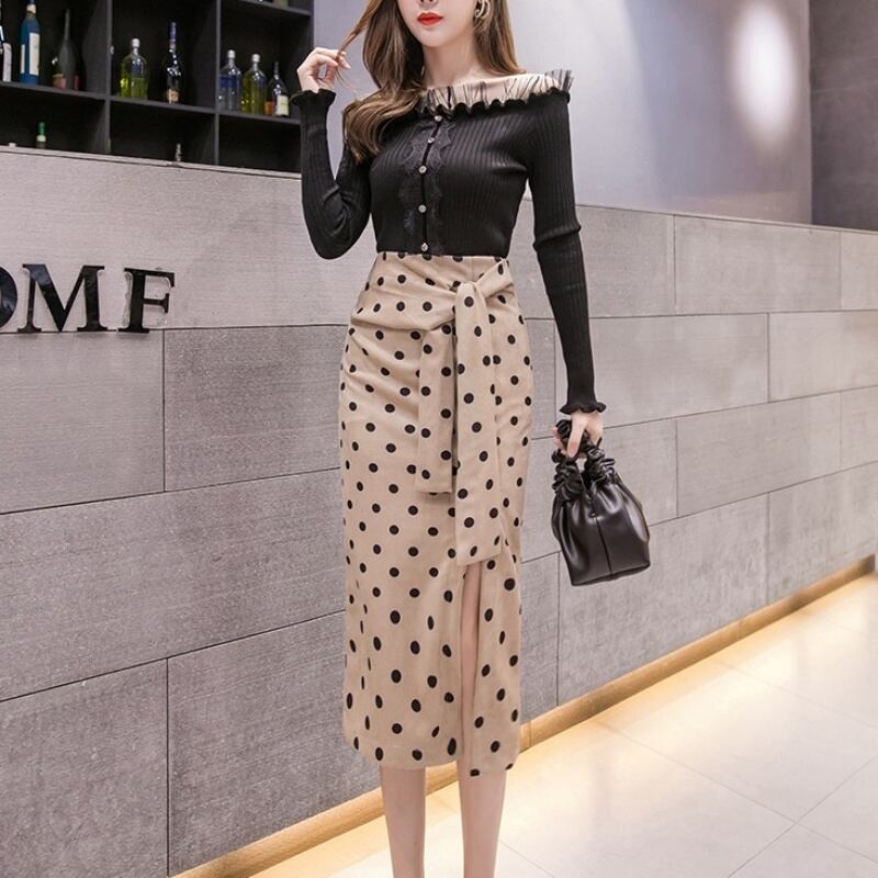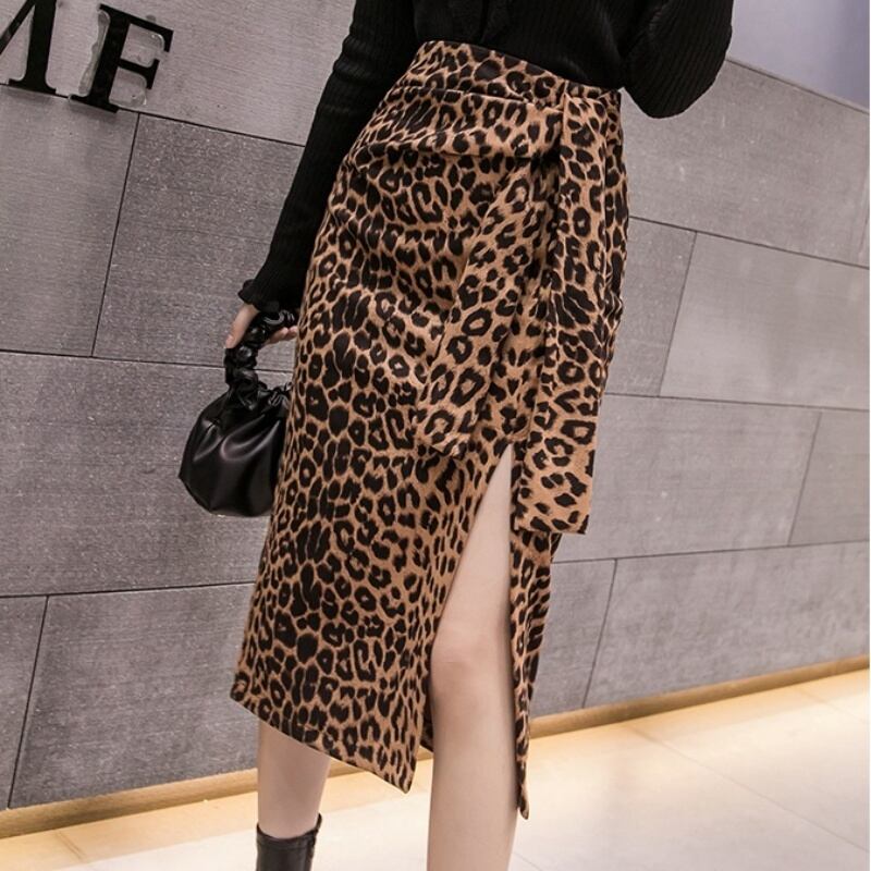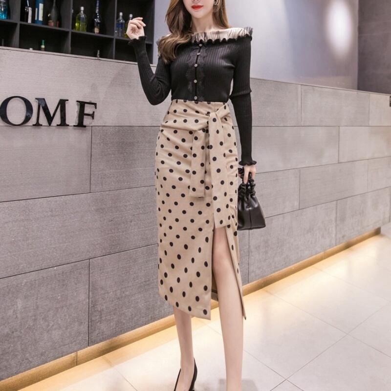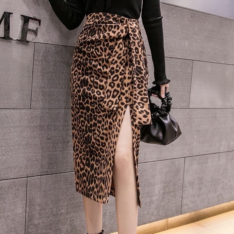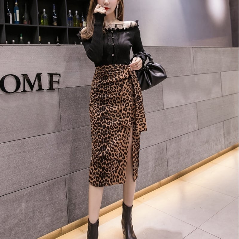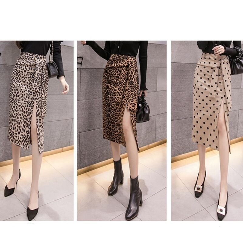 3カラー サイドスリットレオパード/ドット柄タイトスカート *sk029