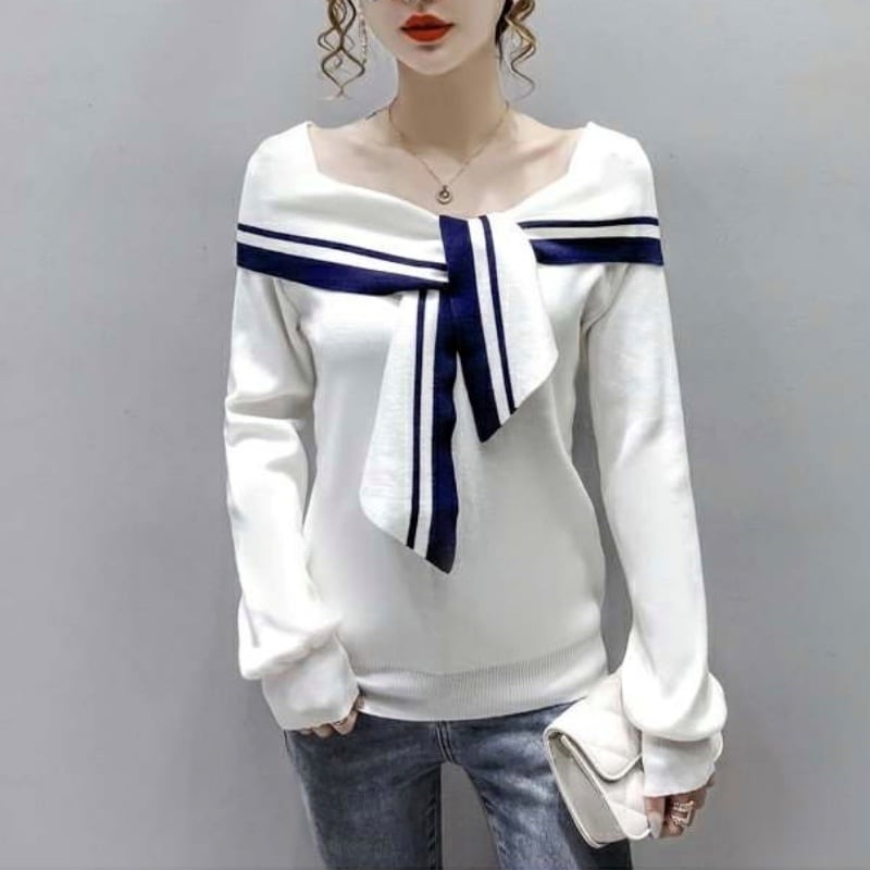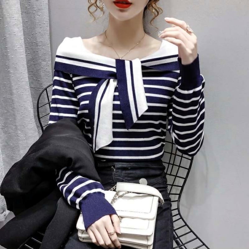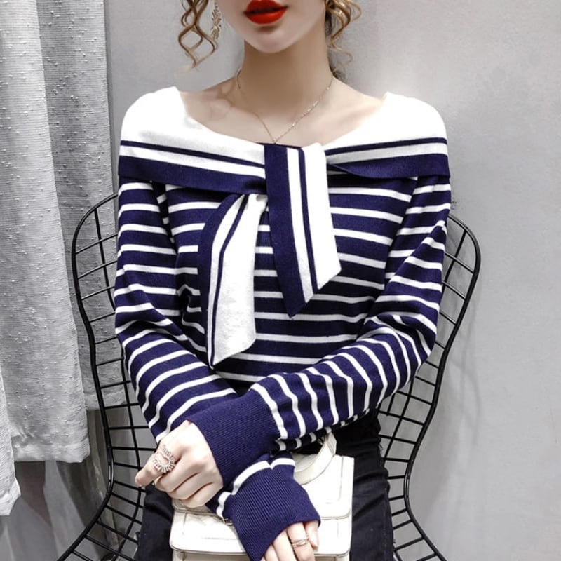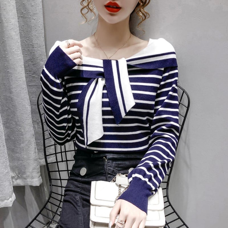 爽やかなボーダーでかわいさもplusしてくれるニットトップです。