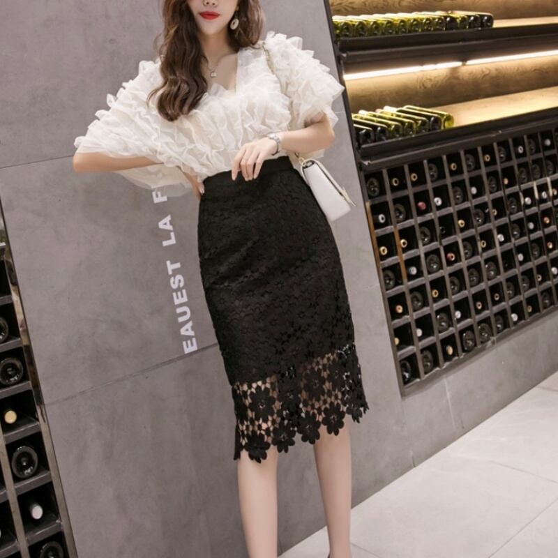 きれいめスタイルコーデに仕上げてくれるフラワーレーススカートです。