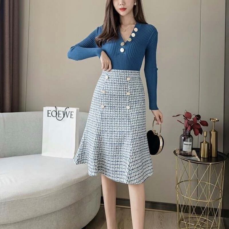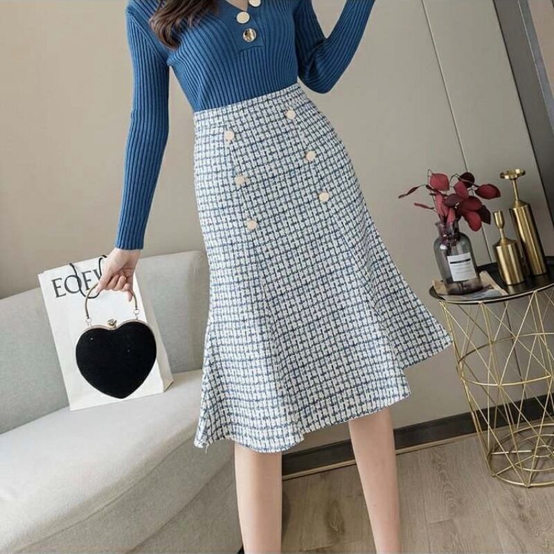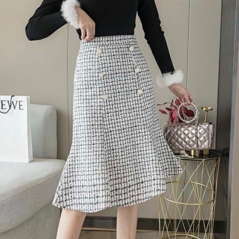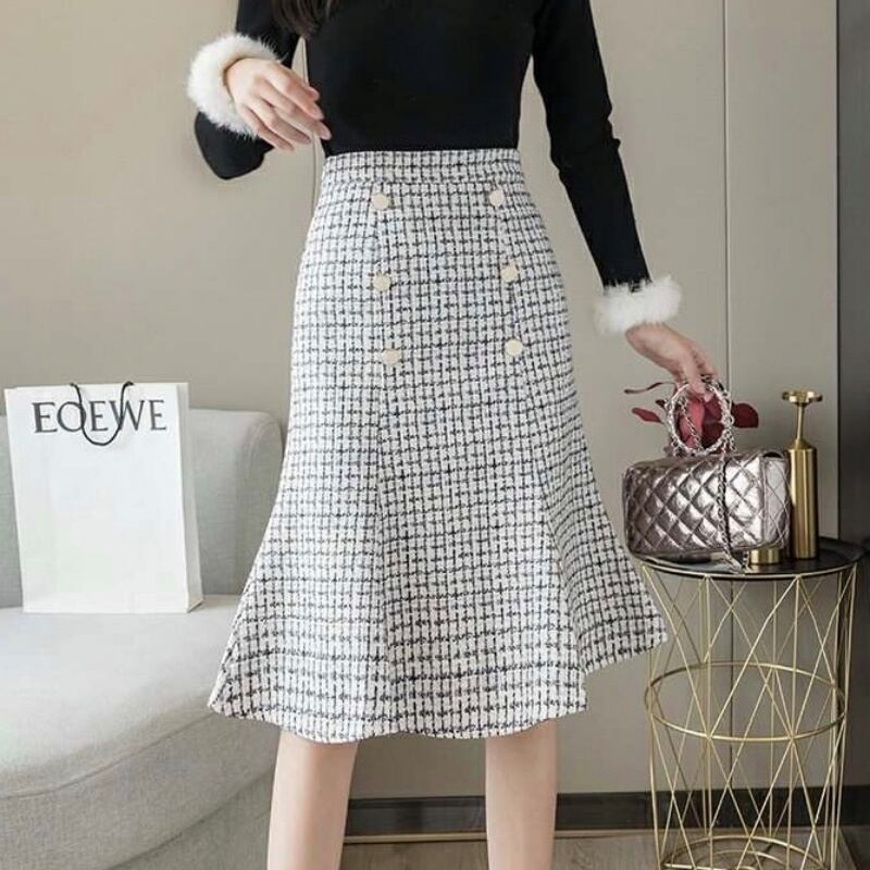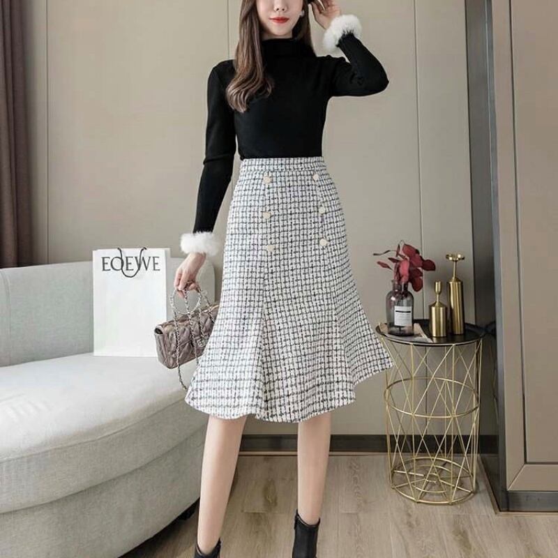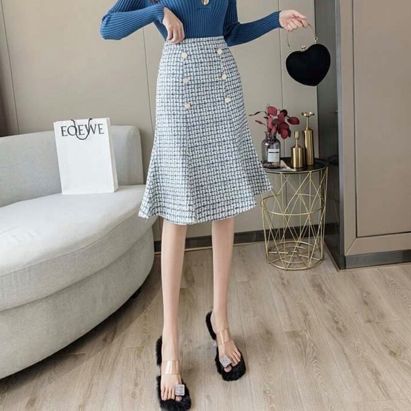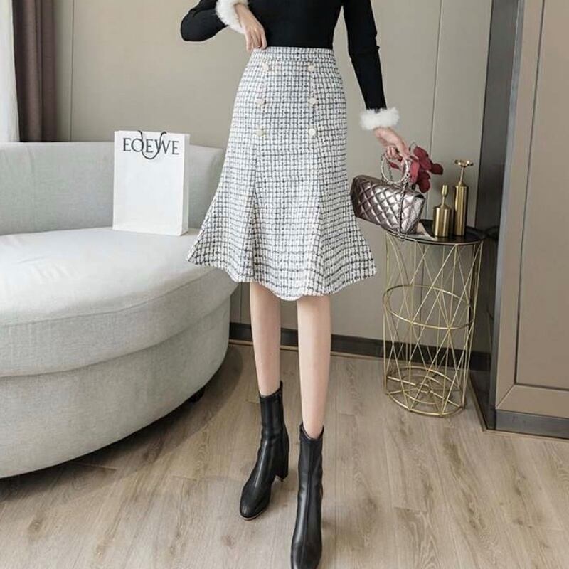 2カラー千鳥格子フィッシュテールタイトスカート *sk033