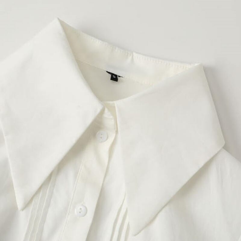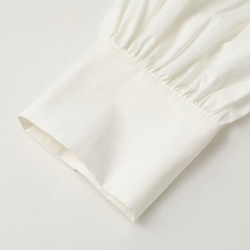 ランタンスリーブ 無地 ホワイト シャツワンピース *on043