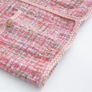 ノーカラー ピンク ツイード ショートジャケット *ja008