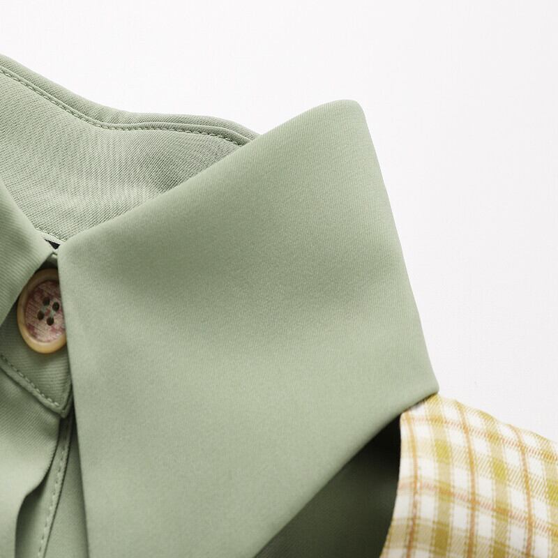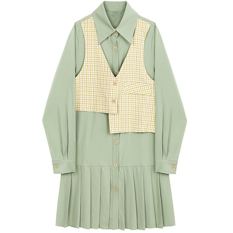 チェック ベスト & プリーツ シャツ ワンピース 2点セット *set009
