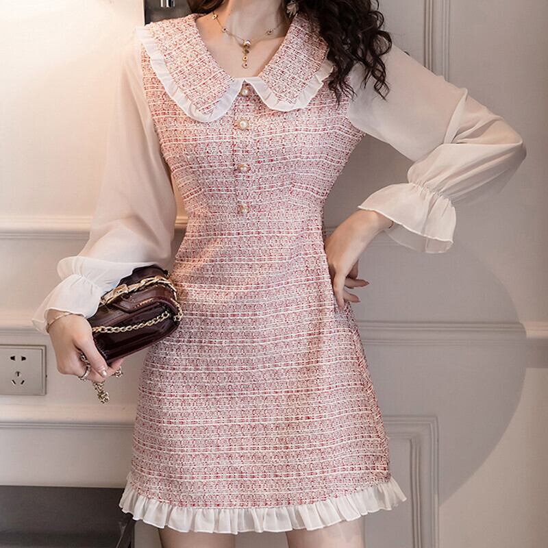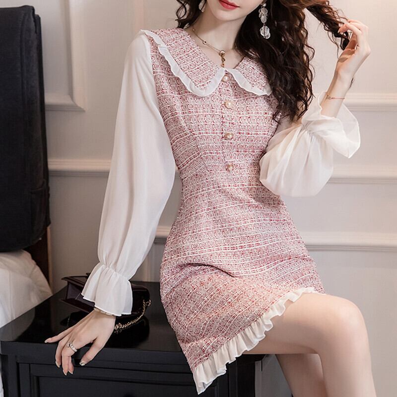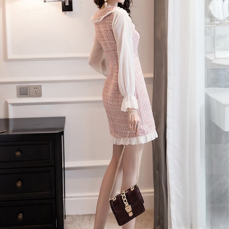 タイトめのシルエットが女性らしいラインを描く大人可愛いミニ丈のツイードドレス♡