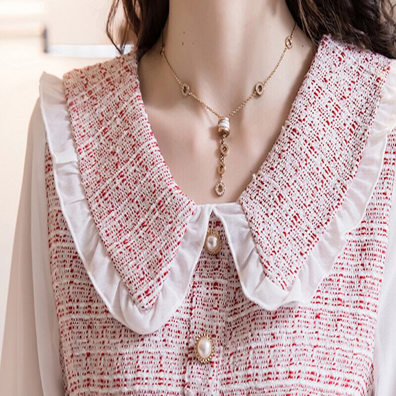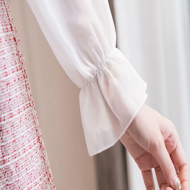 ボリュームがありふんわりとしたスリーブやフリルのディテールが目を引くキュートなデザイン、パールのボタンがエレガントな印象を引き立ててくれます。