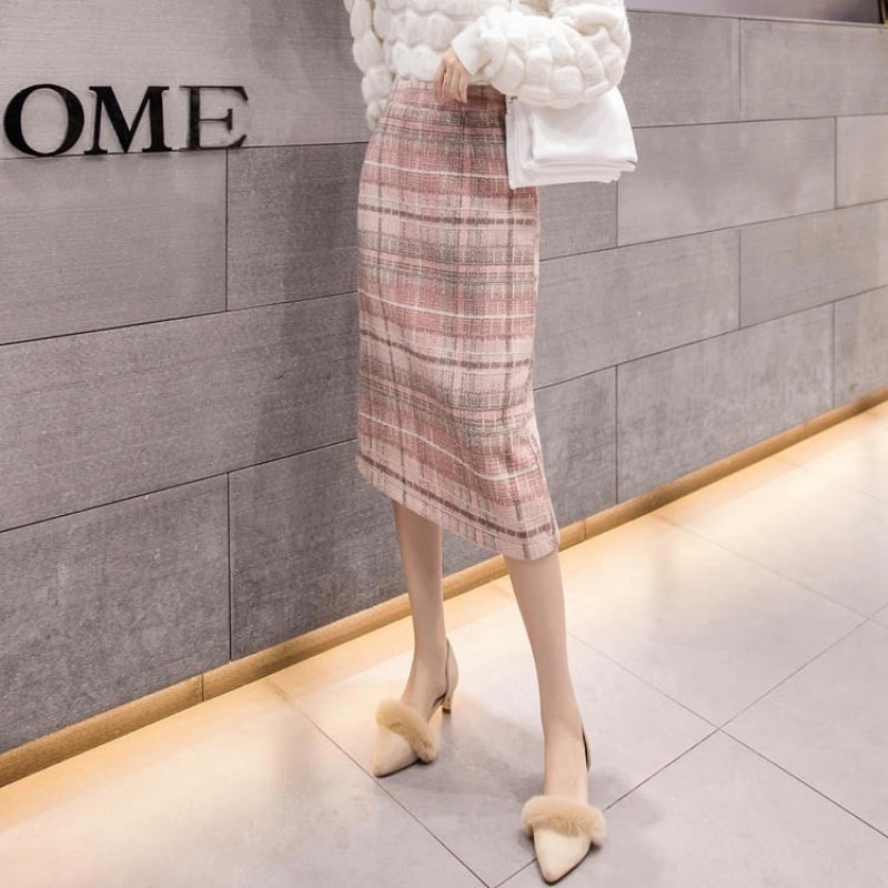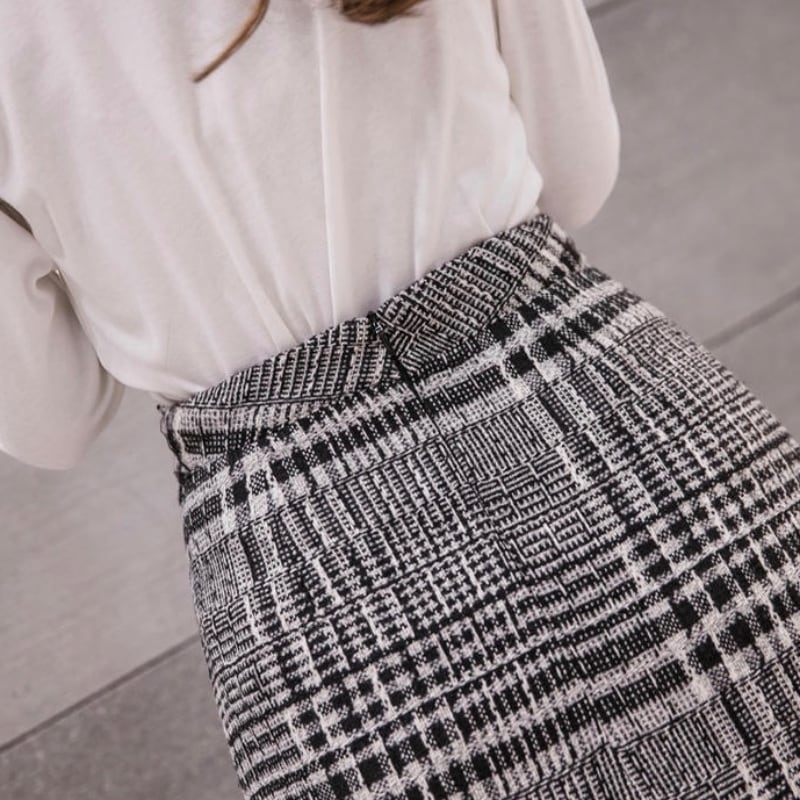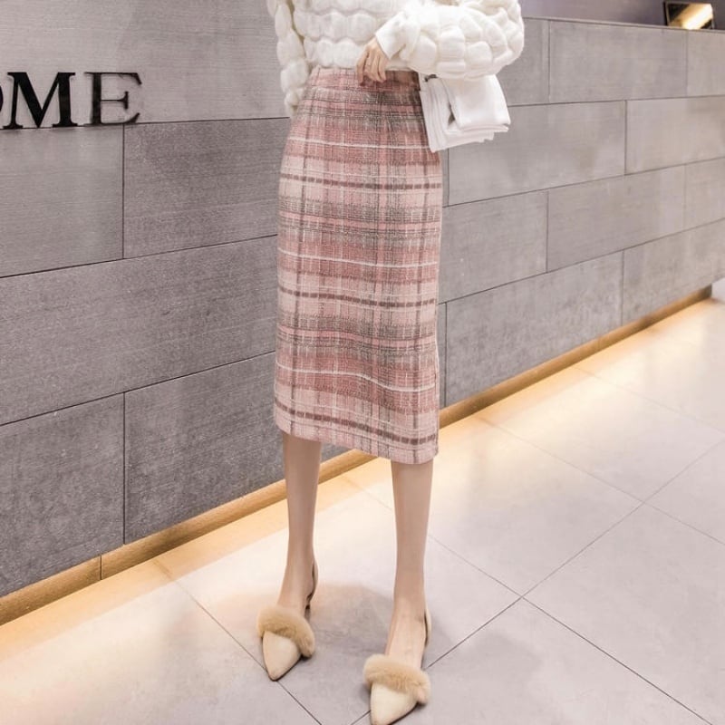 ハイウエストに履くチェック柄スカートは大人レディstyleにしてくれるタイトスカートです。