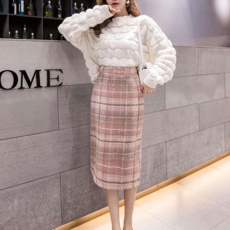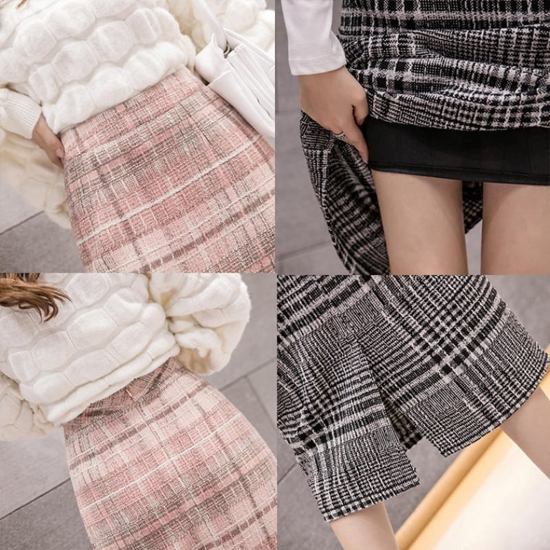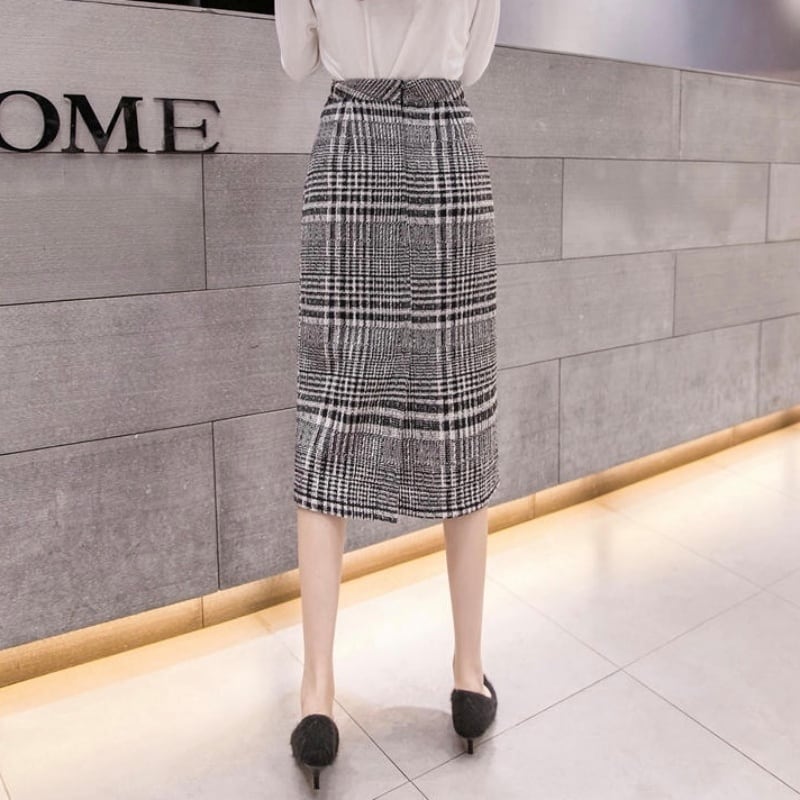 2カラー レトロチェック タイト ミディ丈 ペンシルスカート *sk046