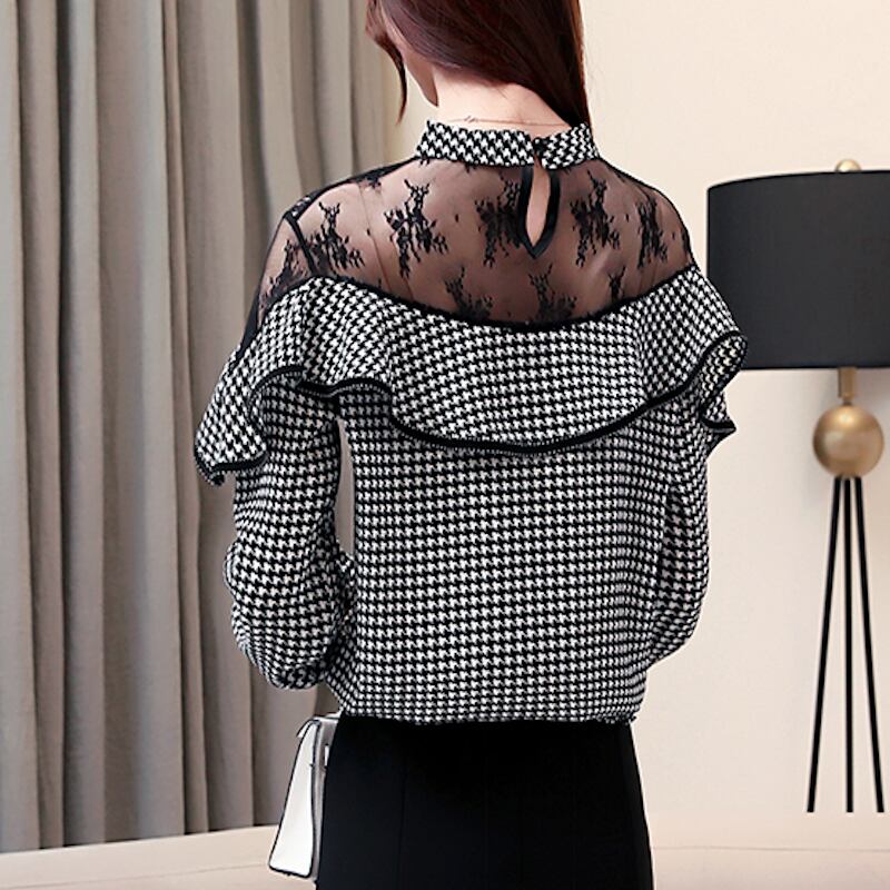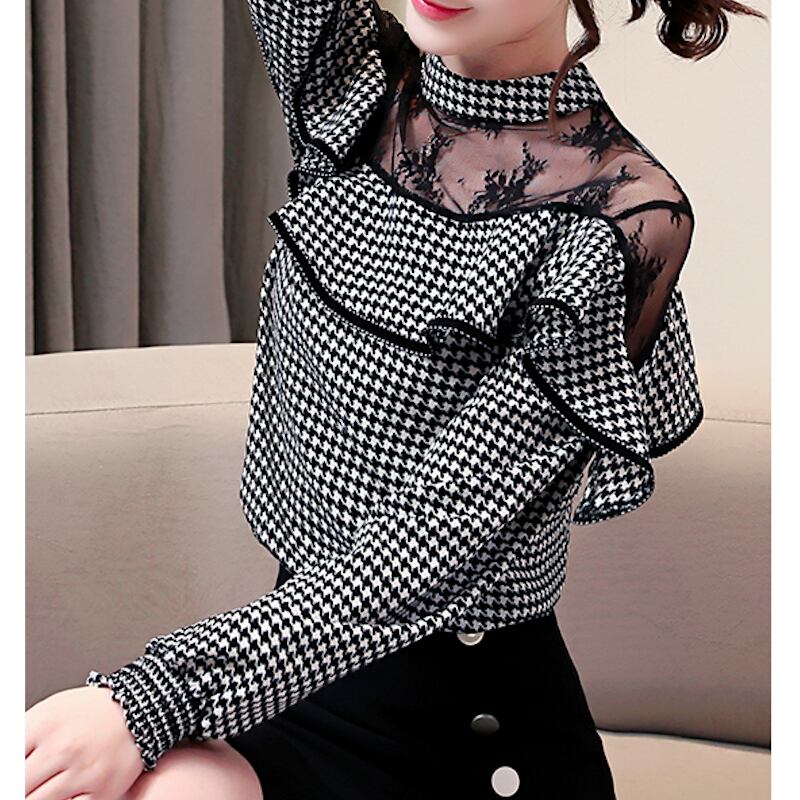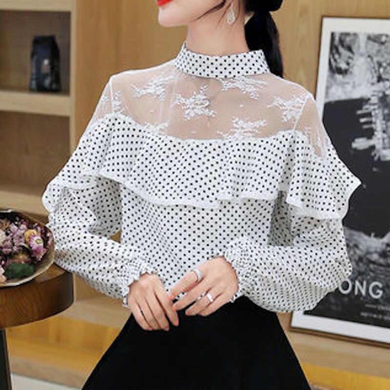 3カラー フローラル レース オフショル風 シース ブラウス S-2XL *bl055