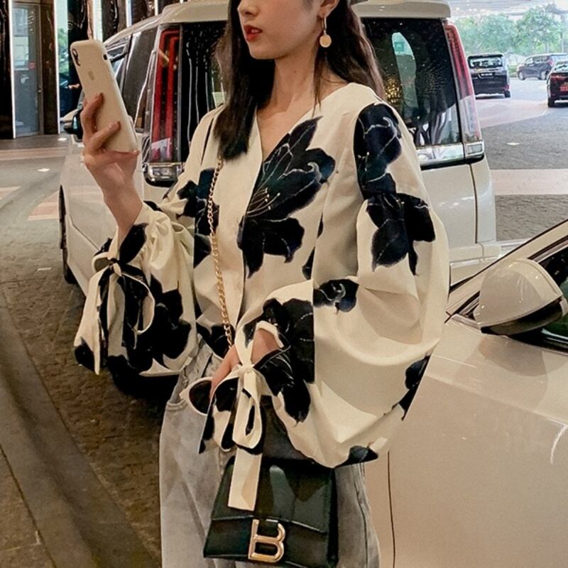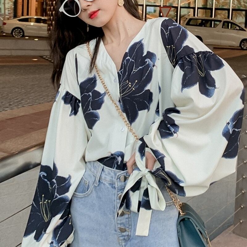 レトロ 花柄 オーバーサイズ ビッグシャツ ブラウス *bl056