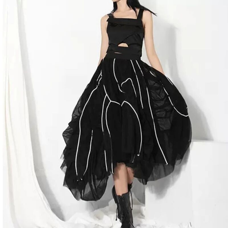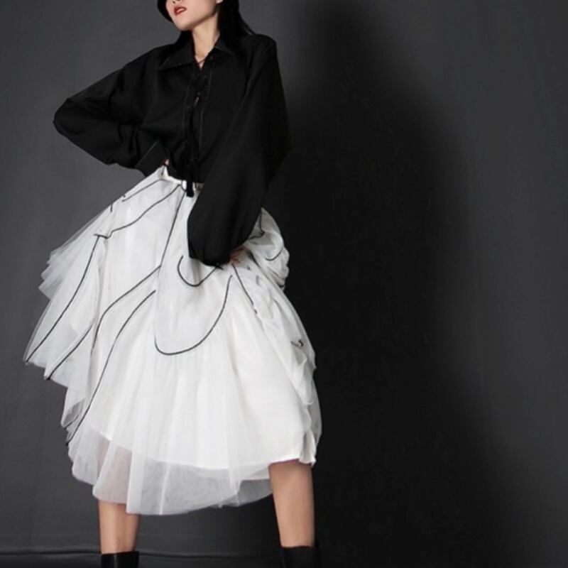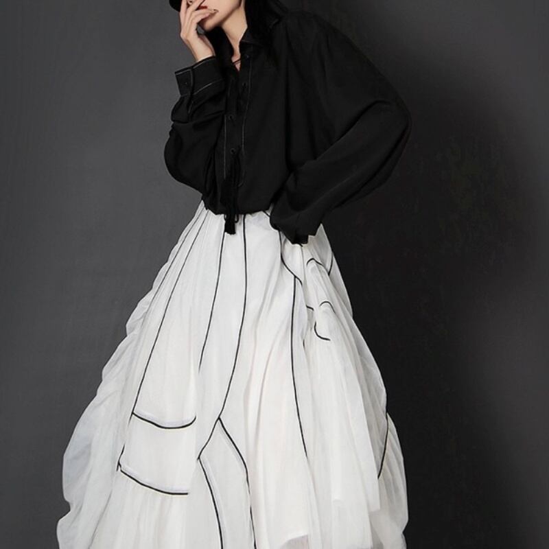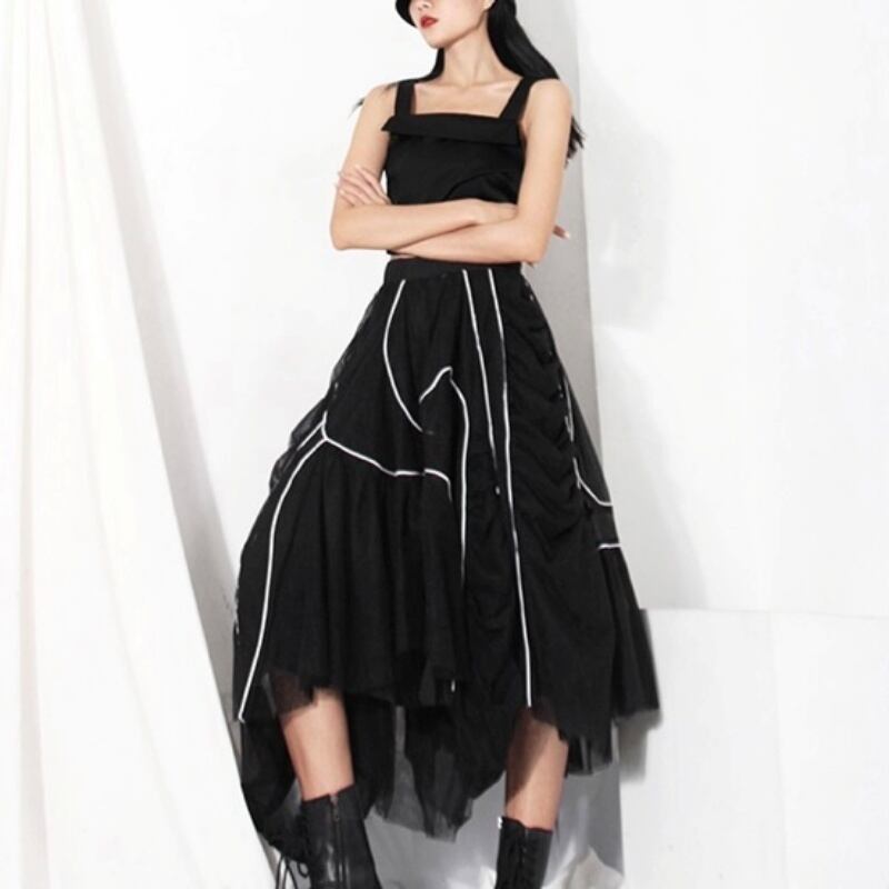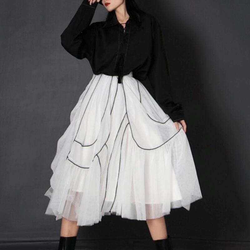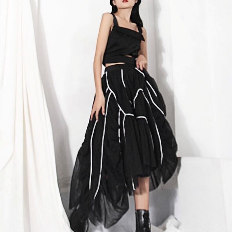 2カラー ストライプ モノトーン ストリート フレアスカート *sk050