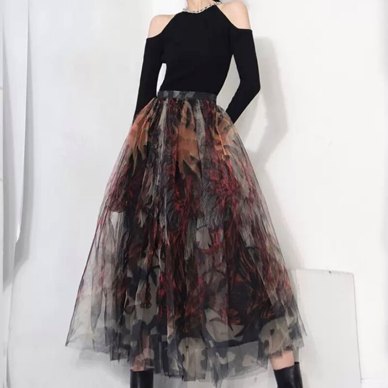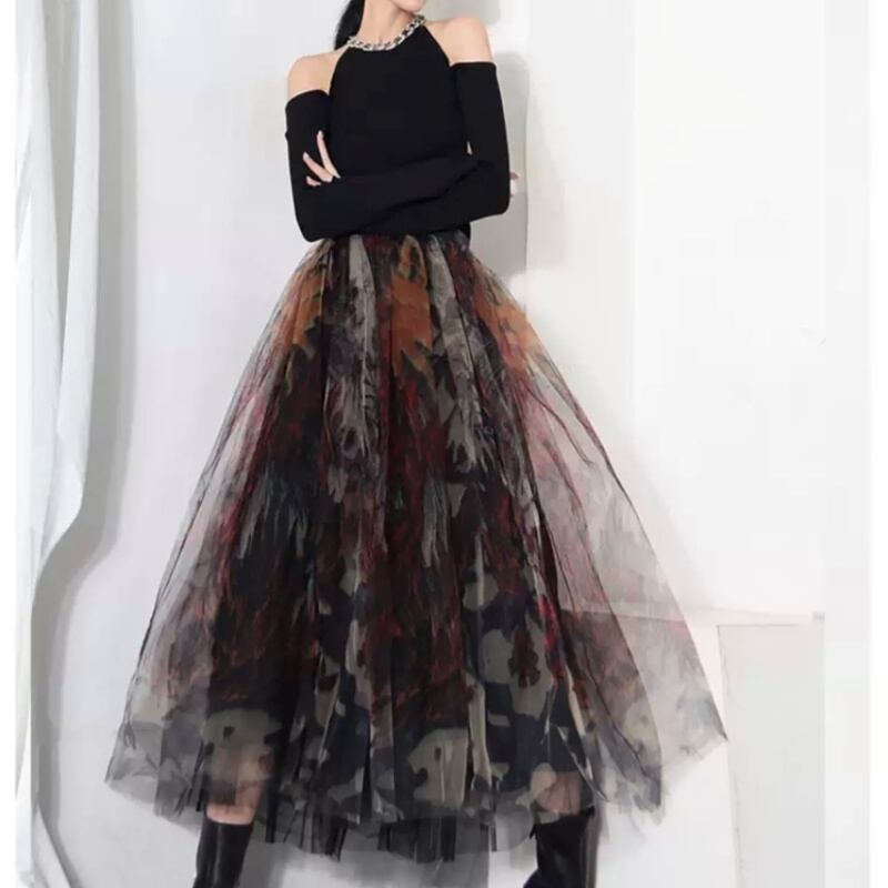 レトロ シースルー メッシュ ハイウエスト ロングスカート *sk048