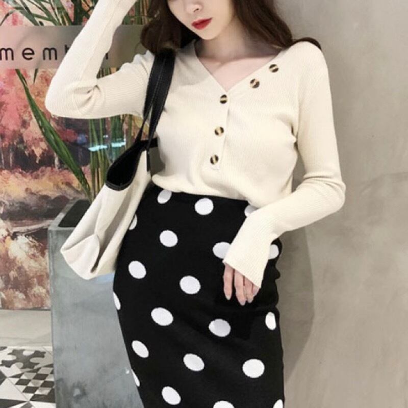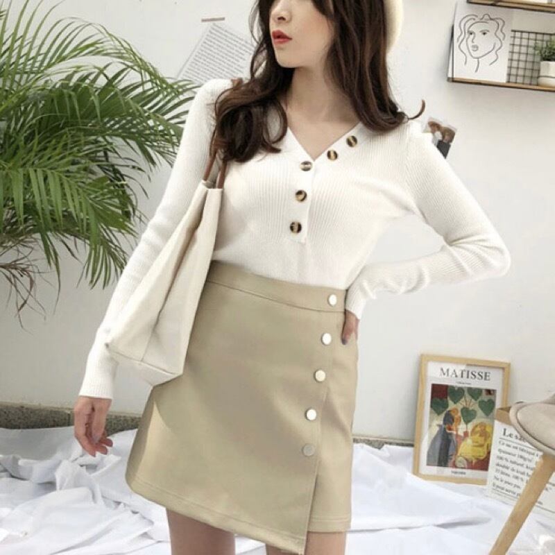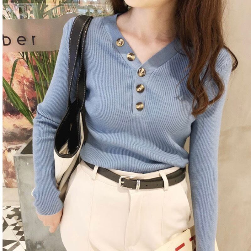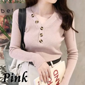 8カラー Vネックボタン リブ プルオーバー タイト ニットセーター *ks025
