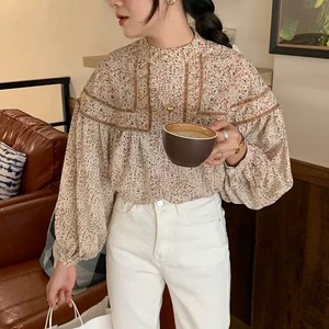 レトロクラシカルでお洒落な印象になるレトロ花柄ブラウスです。
