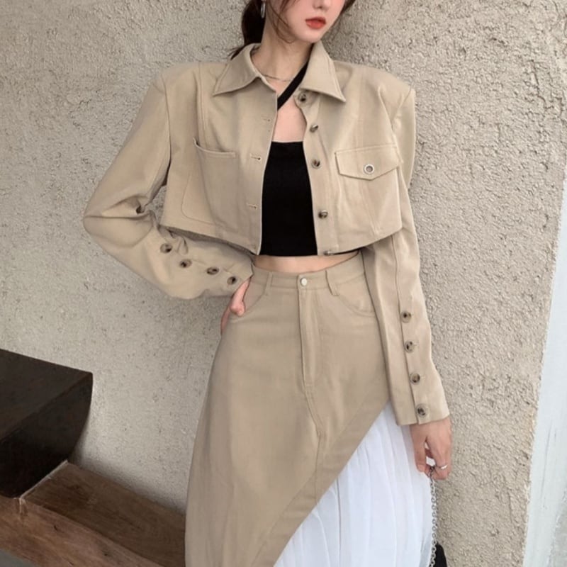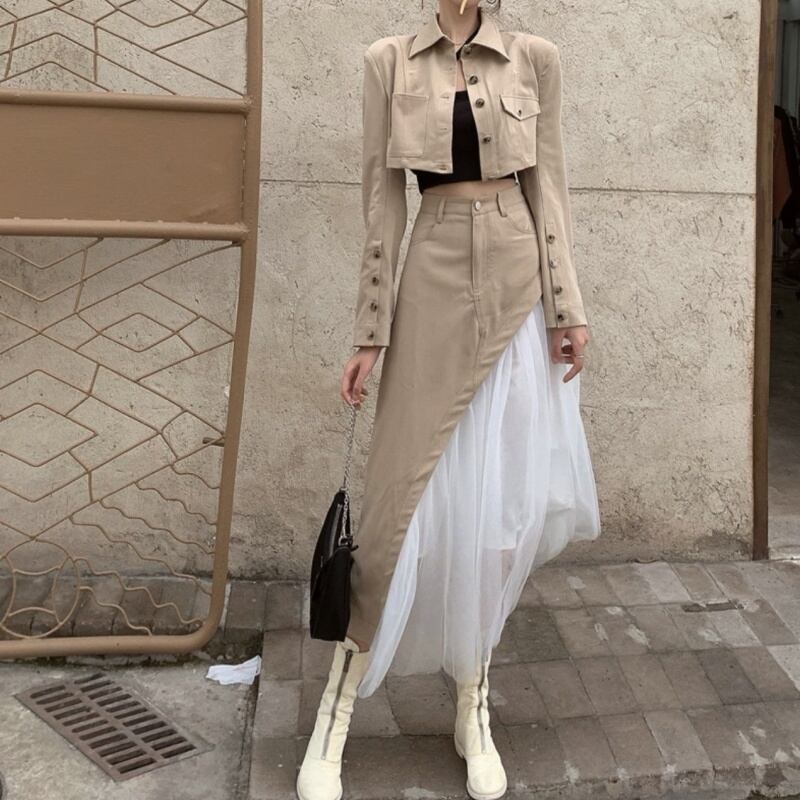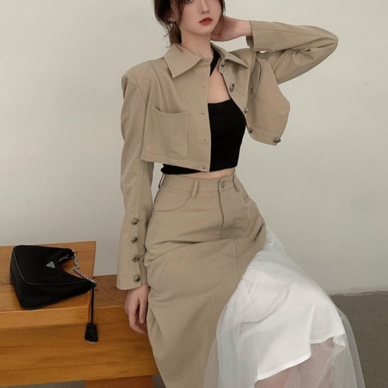 レイヤード 重ね着 ショートジャケット ロングスカート セットアップ *on060