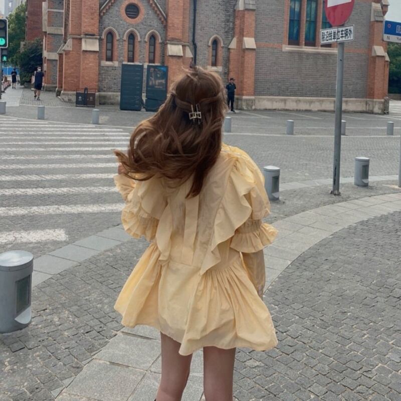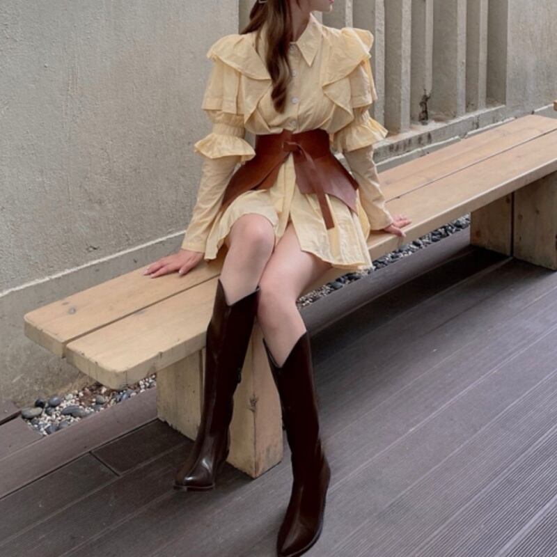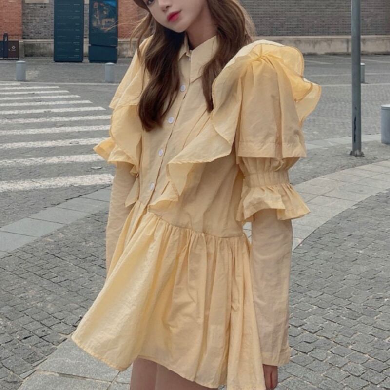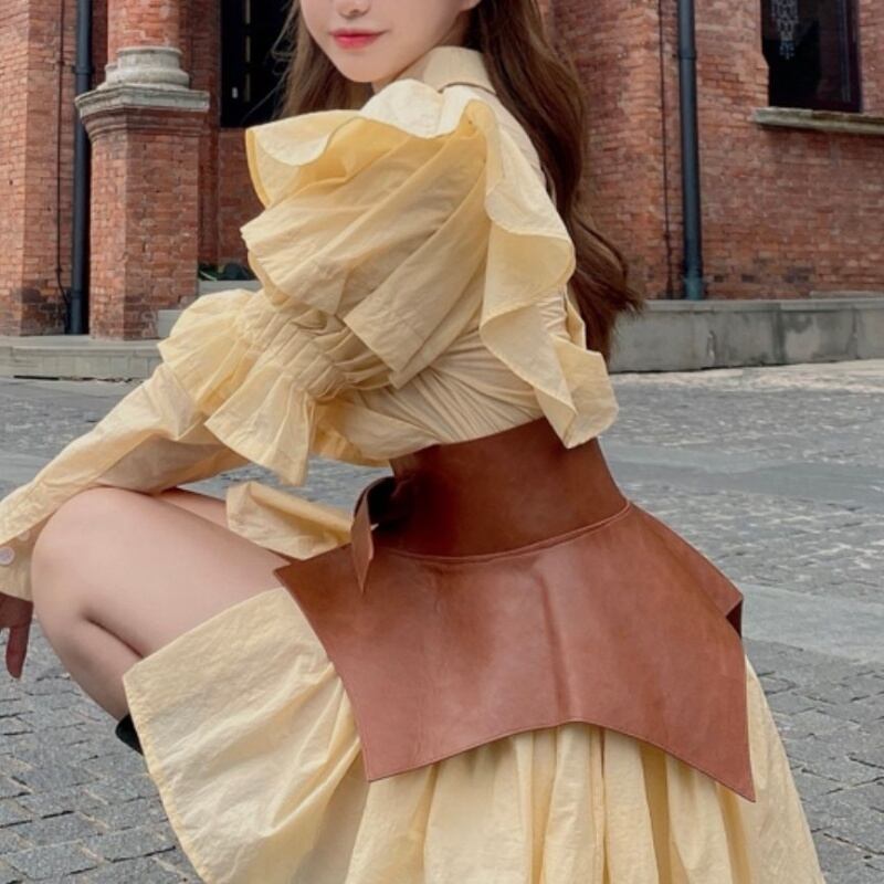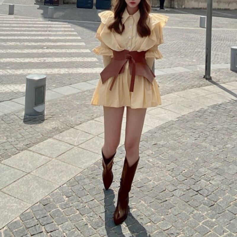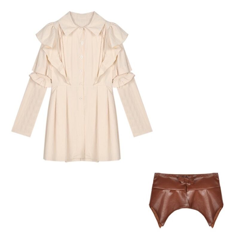 大判のフリルが可愛いミニ丈シャツワンピース×コルセットのセットアップです。