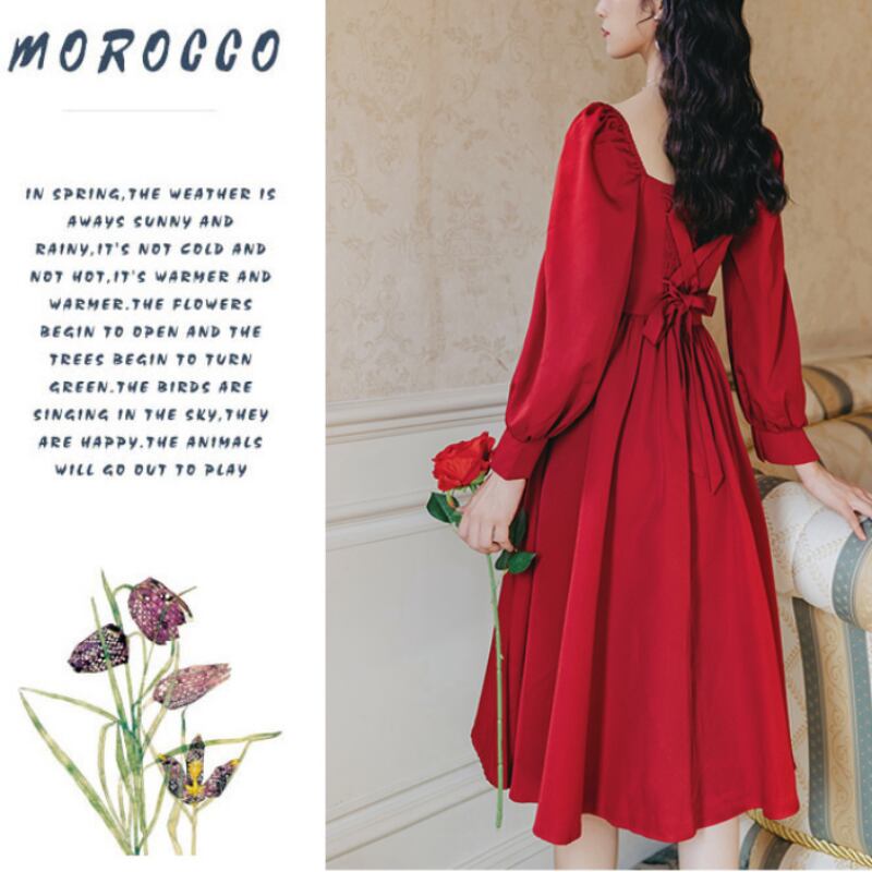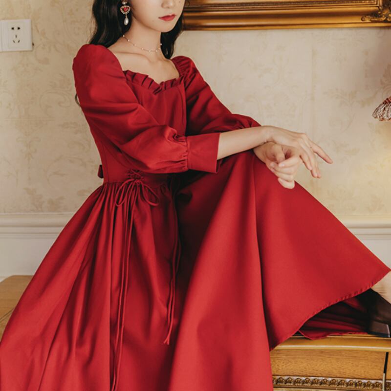 今季旬の鮮やかなレッドカラーが印象的なフレンチレトロなミディ丈ワンピースです。