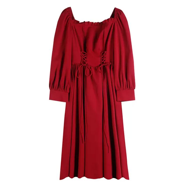 レトロクラシカル スクエアネック ウエストマーク ミディワンピース *on064