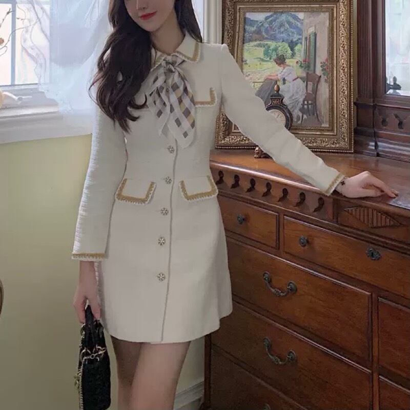 上品 レトロ フォーマル スーツ Aライン ボウタイ ミニワンピース *on065