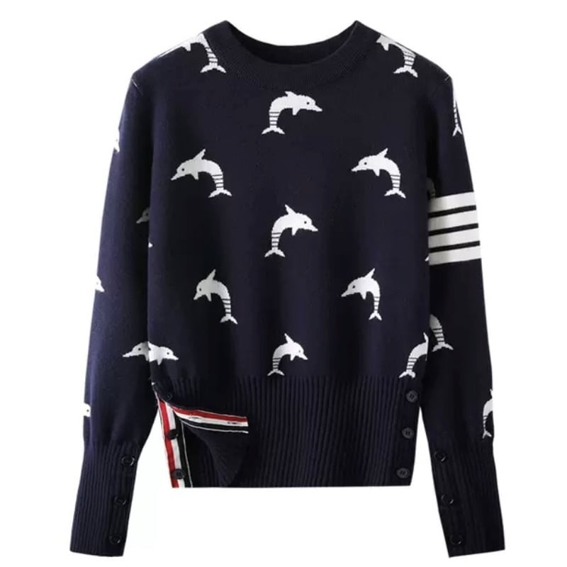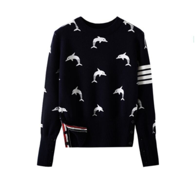 3カラー アニマル柄 ドルフィン リブニット セーター *ks037