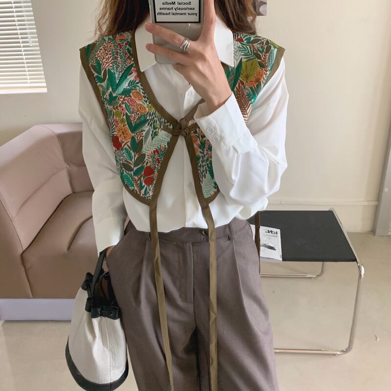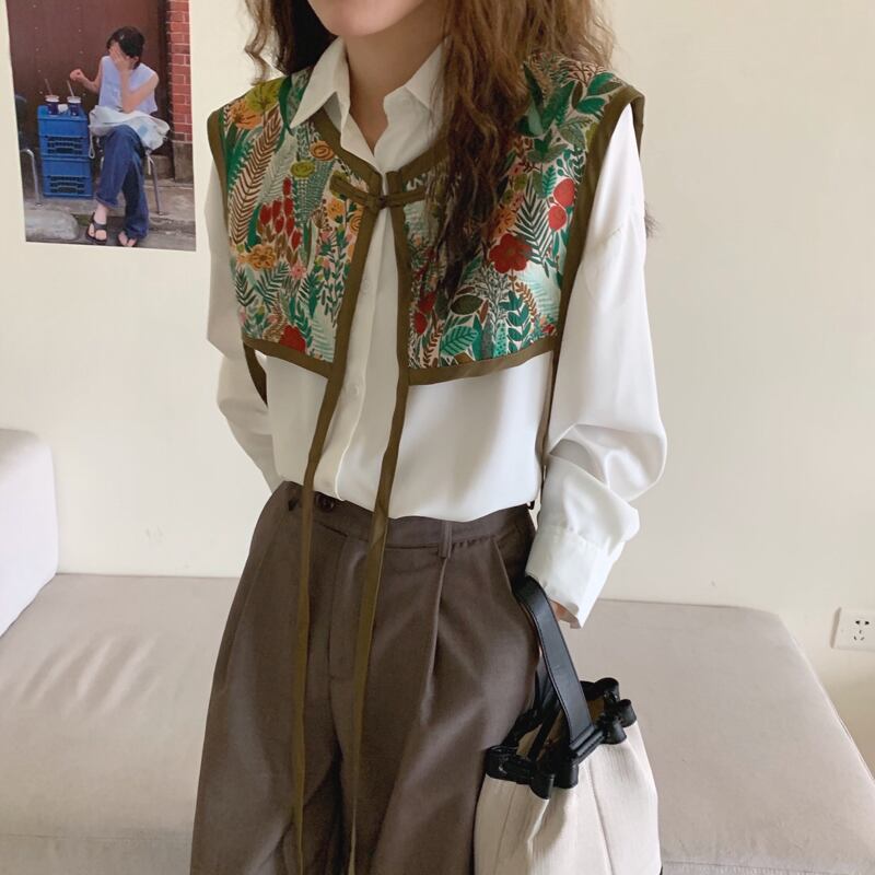 レトロ エスニック刺繍 ベスト 長袖 ブラウス セット *bl094