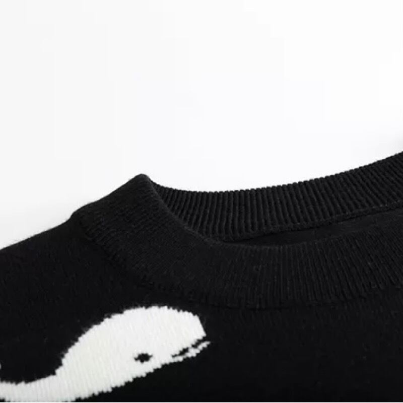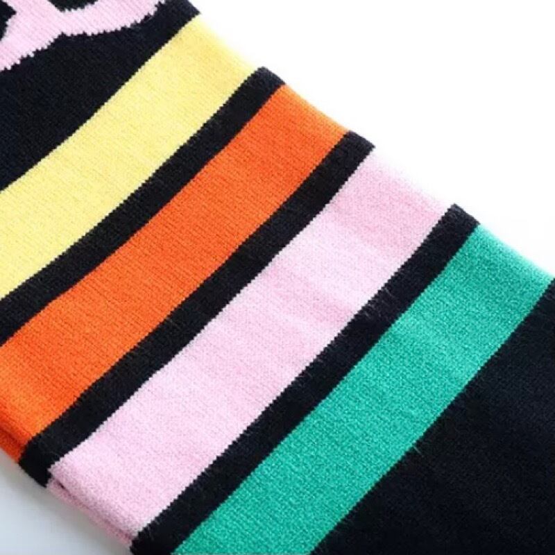 2カラー アニマル柄 長袖 ストライプ プルオーバー ニットセーター *ks041