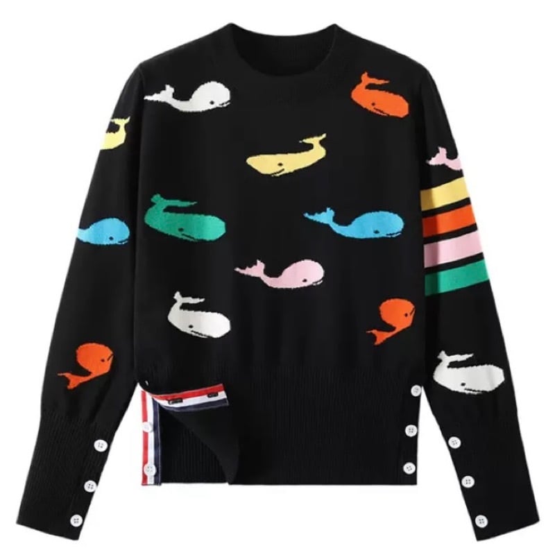 個性的なカラフルに彩られたアニマル柄デザインのニットセーターです。