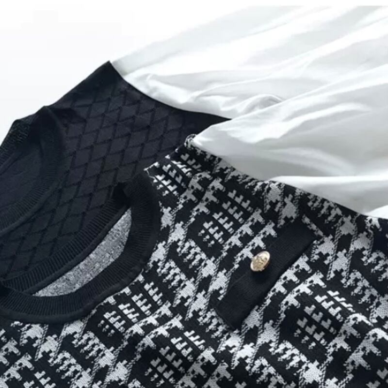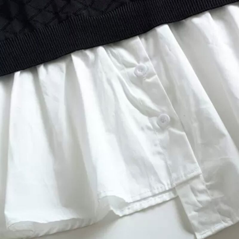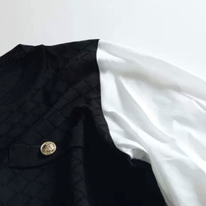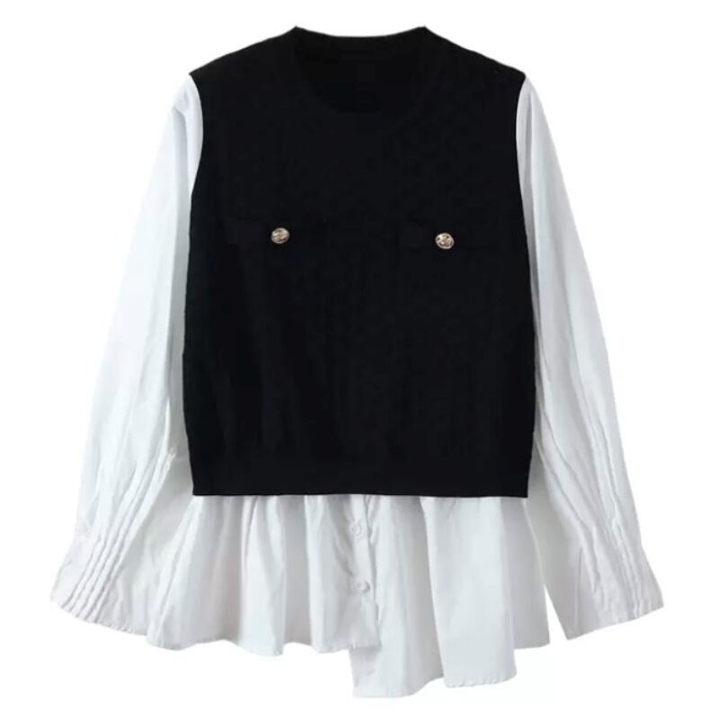 2カラー 千鳥格子 ベストニット フェイクレイヤード シャツ ブラウス *ks044