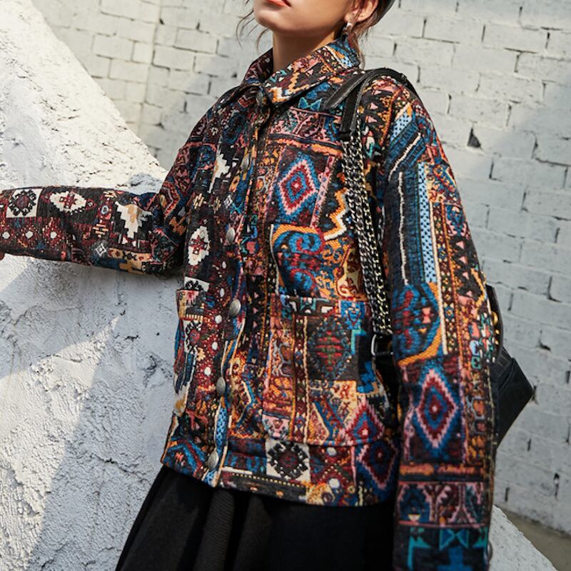 個性的あふれるエスニックでカラフルに彩られたオシャレなジャケットです。