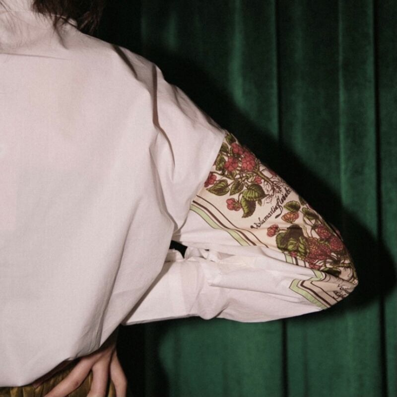 花柄プリントでフレンチレトロな雰囲気のブラウスです。