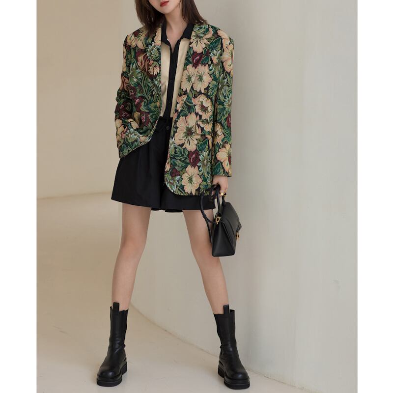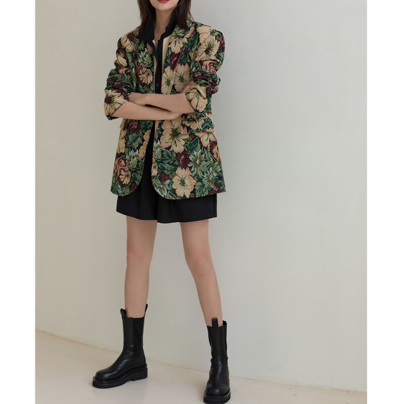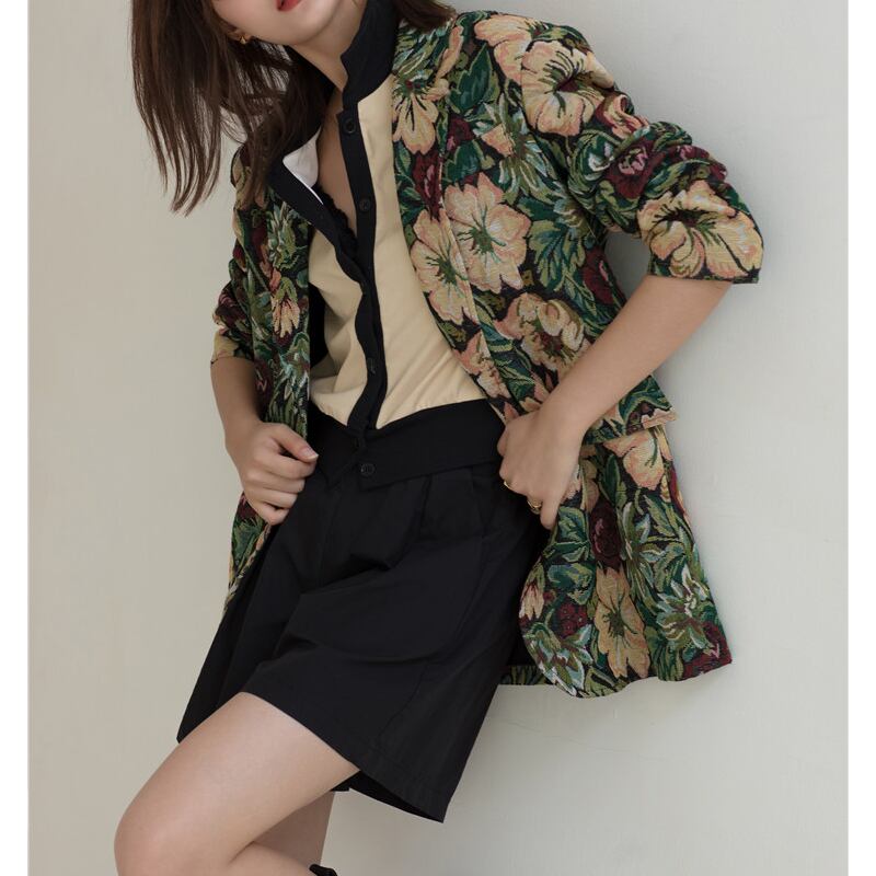 レトロ 花柄 長袖 ミディ丈 フローラル スーツ ジャケット *ja013