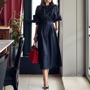 ウエストのベルトシルエットでボディラインを美しく引き立ててくれます。