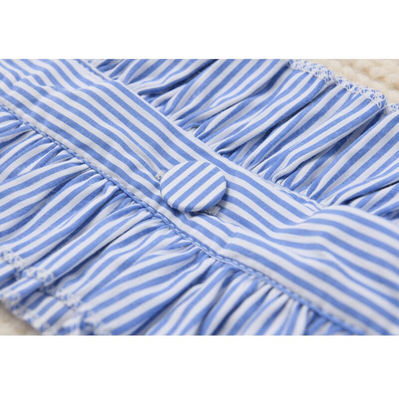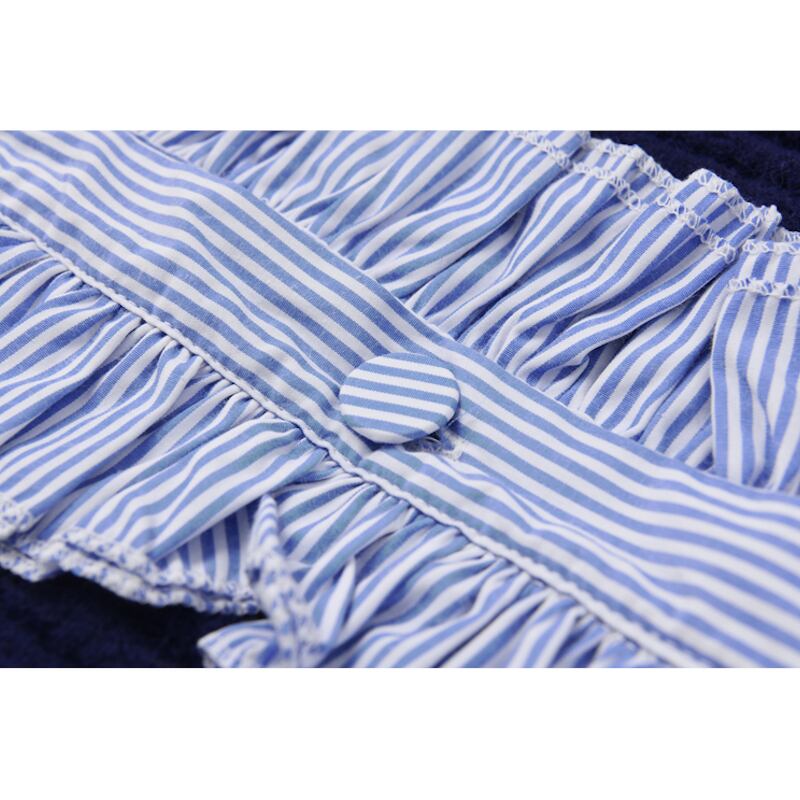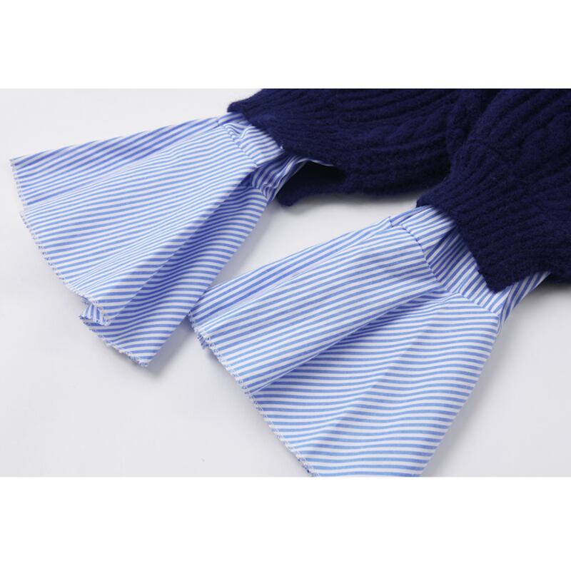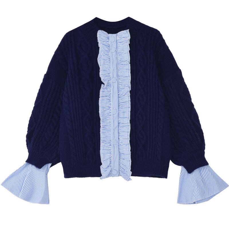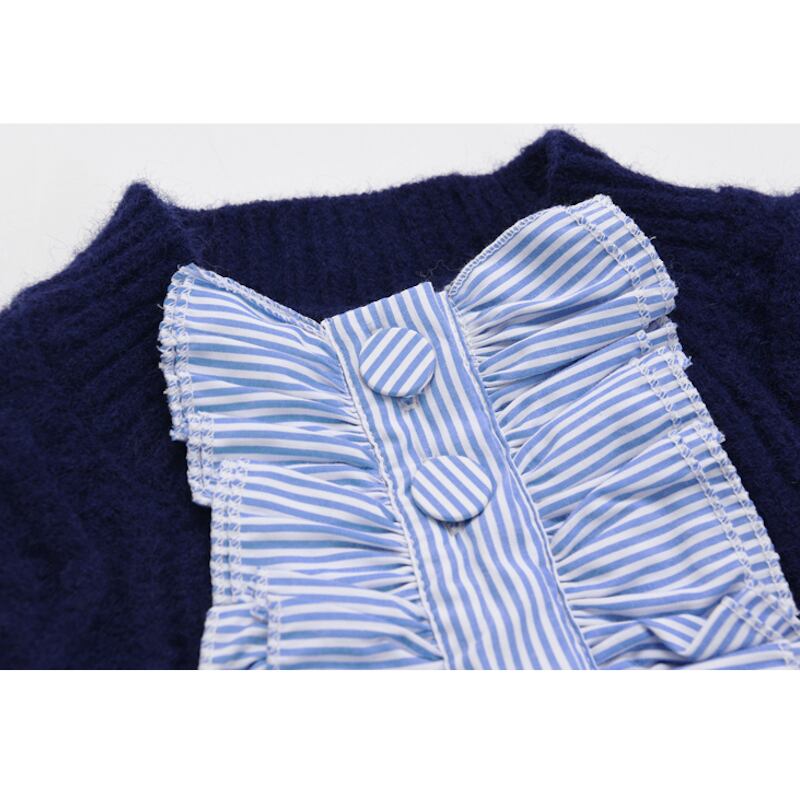 ステッチニット ボーダー フリル クルーネック 長袖 ブラウス *ks057