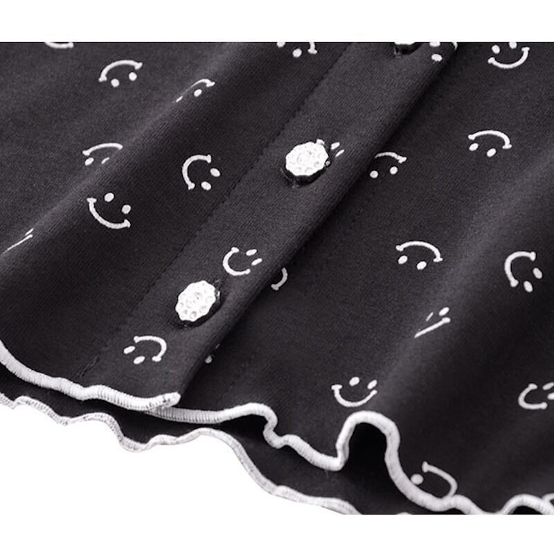 スマイルモチーフ柄 クルーネック ショート丈 長袖 カーディガン *ca044