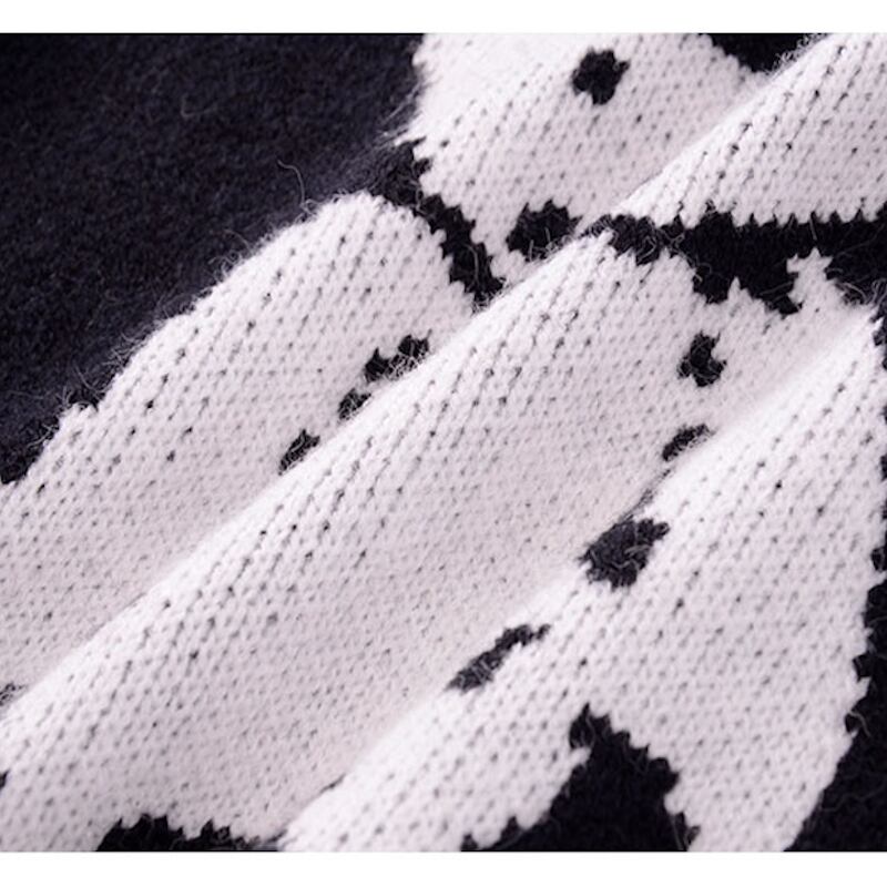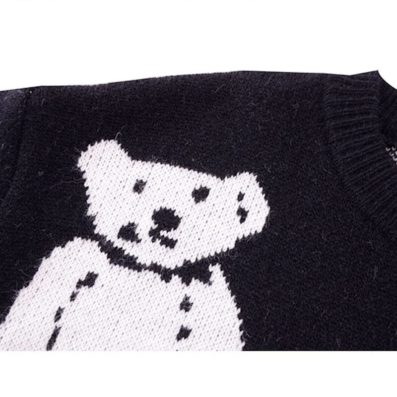 大きめのテディベアディテールがかわいい動物柄が印象的なお洒落なレトロニットです♡