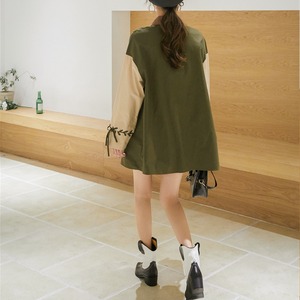 ヴィンテージ レトロ 無地 長袖 ミニ丈 シャツ ブラウス ワンピース *on089