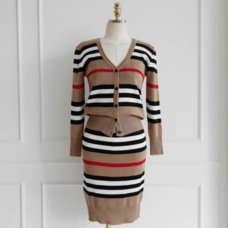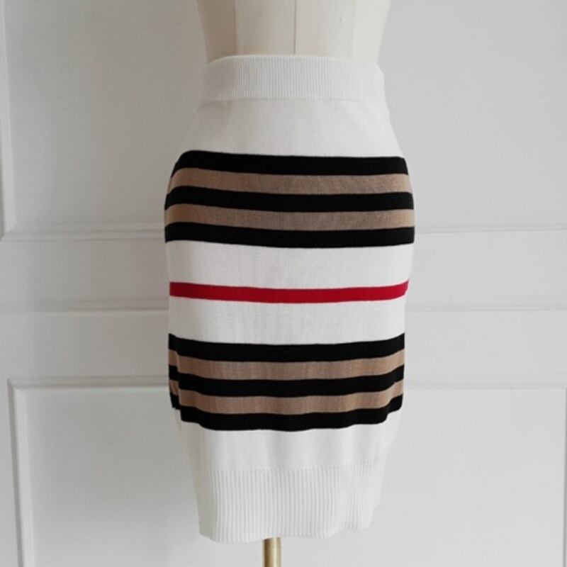 2カラー マルチボーダー きれいめ タイト カーディガン スカート ニットセットアップ *set023
